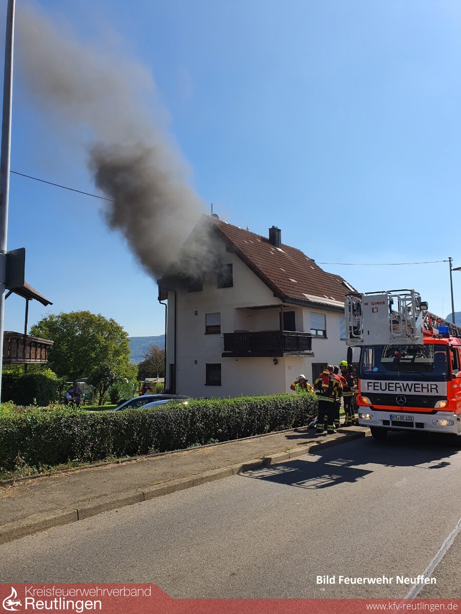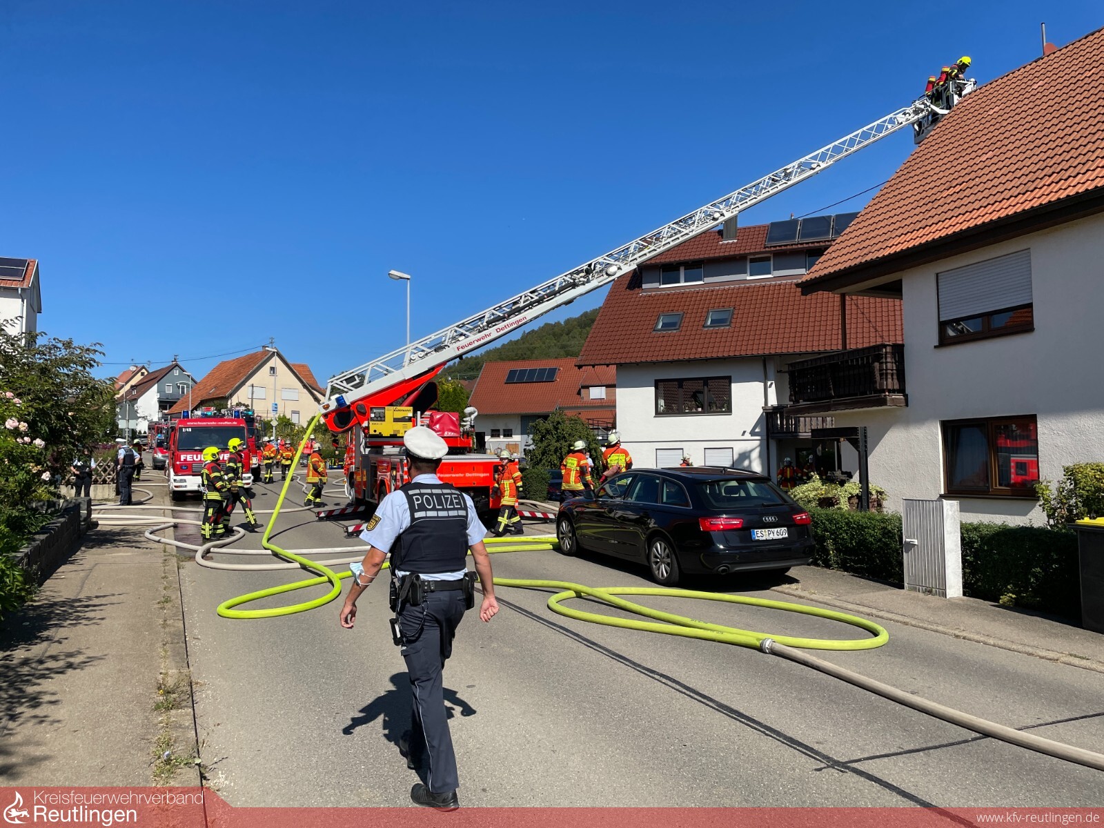 In der Dettinger Straße ist es am Freitagmittag zu einem größeren Einsatz von Feuerwehr, Rettungsdienst und Polizei gekommen. Gegen 12.55 Uhr rückten die Einsatzkräfte nach Kappishäusern aus, nachdem über Notruf ein Dachstuhlbrand an einem Einfamilienhaus gemeldet worden war. Beim Eintreffen der Helfer drangen bereits Rauchschwaden aus dem Gebäude. Die Bewohner hatten sich glücklicherweise unverletzt ins Freie begeben können. Durch die Feuerwehr konnte der Brand, der im Dachgeschoss ausgebrochen war, in der Folge gelöscht und somit auf diesen Stock begrenzt werden. Den bisherigen Ermittlungen zufolge könnte eine noch glimmende Zigarette den Brand ausgelöst haben. Ersten, vorläufigen Schätzungen zufolge dürfte sich der Sachschaden im Dachgeschoss auf 10.000 Euro belaufen. Das Haus ist weiterhin bewohnbar. Für die Dauer des Einsatzes musste die Ortsdurchfahrt von Kappishäusern bis zirka 14.20 Uhr voll gesperrt werden. (Quelle: Polizeipräsidium Reutlingen)