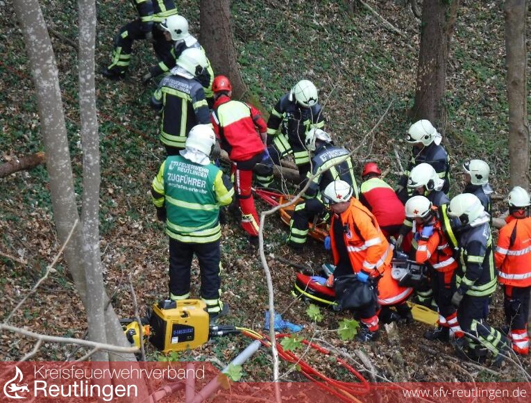 Die Feuerwehr Reutlingen die mit einem Rüstzug der Abt. Berufsfeuerwehr, freiwillige Feuerwehr Stadtmitte und Gönningen mit 6 Fahrzeugen und 22 Einsatzkräften an der Einsatzstelle war, konnte dann in Absprache mit dem Notarzt und in Zusammenarbeit mit dem Rettungsdienst die schwerverletzte Beifahrerin nach ca. 40 min. schonend aus dem Fahrzeug retten.