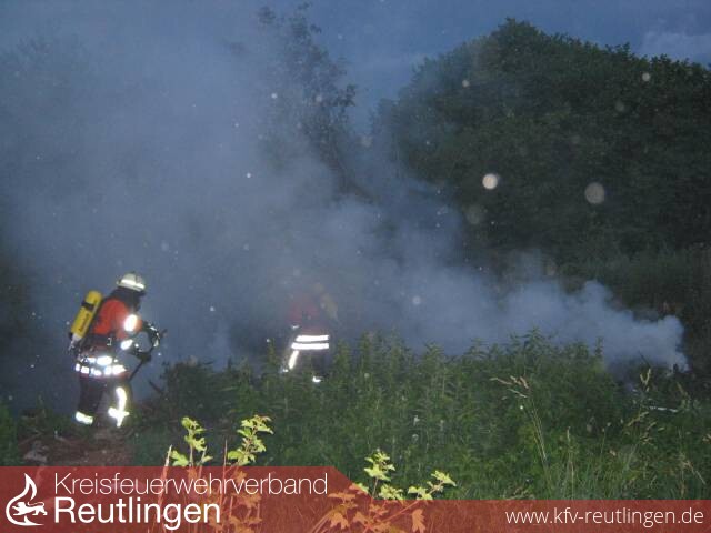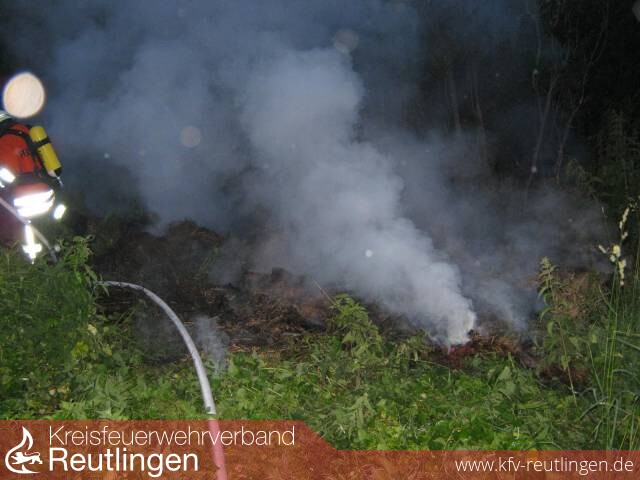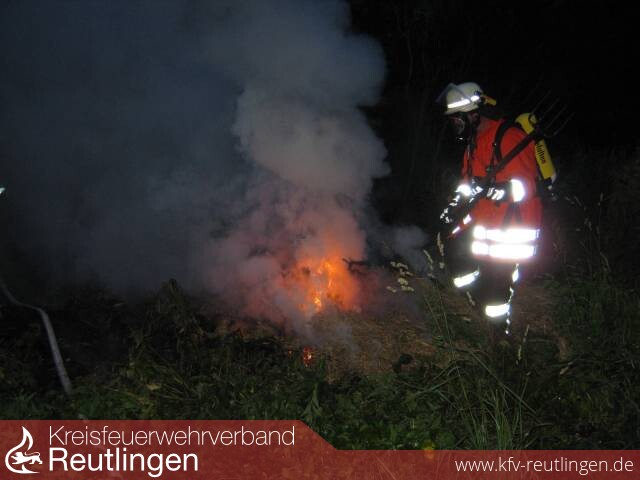 Im Zwiefalter Teilort Baach hatte ein noch bisher unbekannter altes Heu abgelagert und verbrannt. Von einem Spaziergänger wurde der örtliche Feuerwehrkommandant angerufen und auf den Brand aufmerksam gemacht. Nach einer kurzen Erkundung alarmierte er die Freiwillige Feuerwehr Zwiefalten über die Feuerwehr- und Rettunsleitstelle Reutlingen.