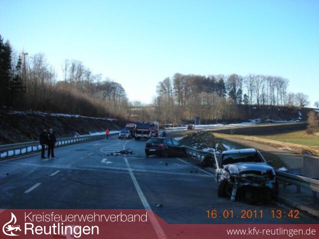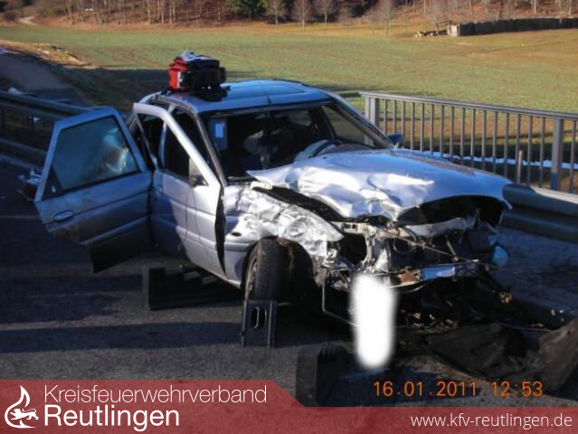 Gegen 12.30 Uhr befuhr ein 59-jähriger Ford-Fahrer die L 230 von Münsingen in Richtung Böttingen. Der aus Münsingen stammende Fahrer geriet in Höhe von Auingen infolge überfrierender Nässe im Verlauf einer abfallenden Linkskurve ins Schleudern. Auf der Gegenfahrbahn prallte er frontal mit einem entgegenkommenden Polo zusammen. Beide Fahrer wurden in ihren Autos eingeklemmt und mussten von der Feuerwehr befreit werden. Der 59 Jährige kam mit schweren Verletzungen in die Albklinik nach Münsingen, der 35 jährige Polo-Fahrer wurde mit einem Rettungshubschrauber ins Bundeswehrkrankenhaus nach Ulm geflogen. An den beiden Fahrzeugen entstand jeweils Totalschaden in Höhe von insgesamt 15.000 Euro.