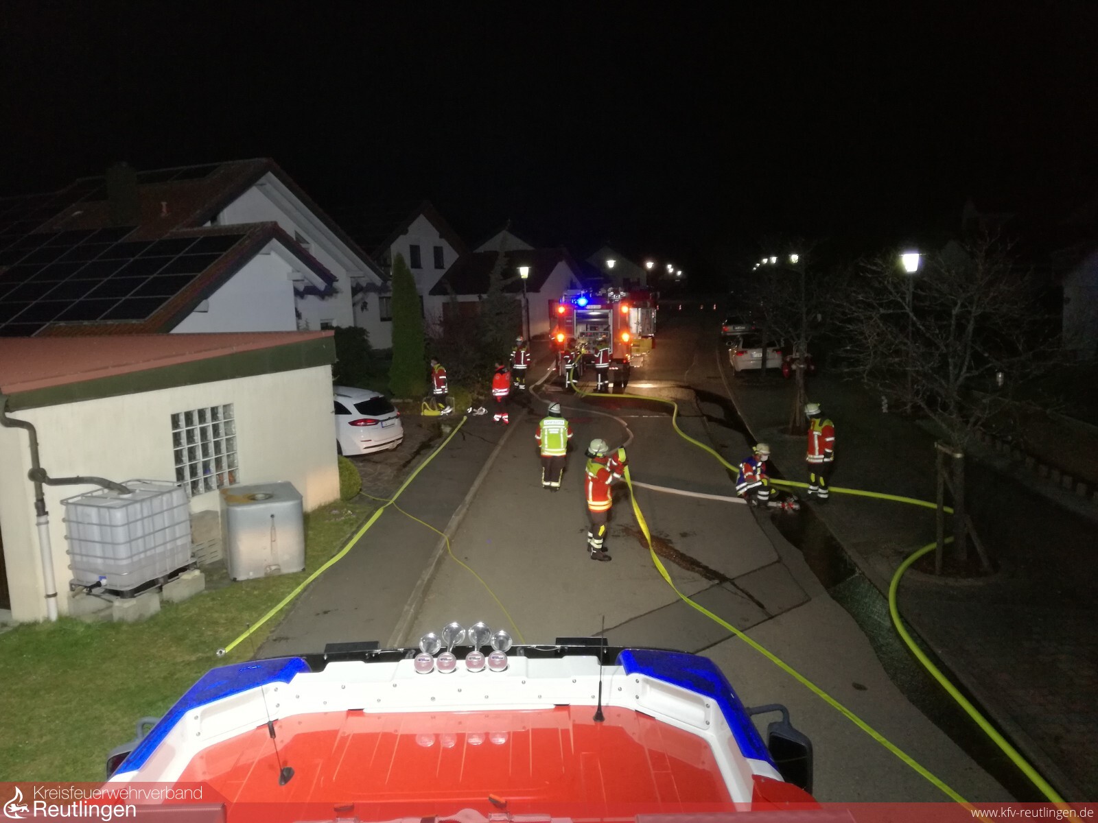 Beim Eintreffen der Feuerwehr Hayingen konnten die Bewohner außerhalb des Gebäudes angetroffen werden, sodass im Gebäude keine weiteren Personen mehr zu erwarten waren. Durch rasches Eingreifen der Bewohner wurde ein Ausbreiten des Feuers, sowie ein größerer Löscheinsatz der Feuerwehr unterbunden. Das Brandmaterial war bereits mit einem Gartenschlauch abgelöscht und aus dem Kellerraum gebracht worden. Die Feuerwehr kontrollierte mit einem Trupp unter Atemschutz durch Zuhilfenahme der Wärmebildkamera den Ort der Brandstelle im Kellergeschoss. Im weiteren Einsatzverlauf wurde das verrauchte Wohnhaus mit einem weiteren Atemschutztrupp und mittels Überdrucklüfter gezielt belüftet, sodass das Gebäude abschließend rauchfrei übergeben werden konnte. Ein C-Rohr war zur Sicherheit und zum vollständigen Ablöschen des Brandgutes aufgebaut.