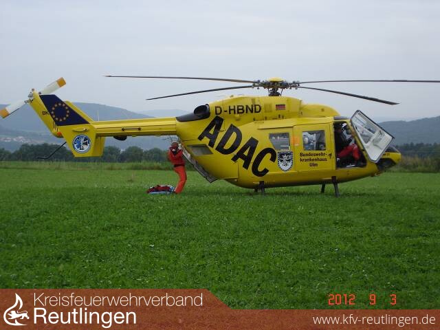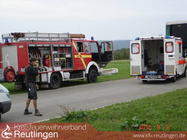 Einsatzmittel: Freiwillige Feuerwehr Zwiefalten LF 16, LF 8, DRK Riedlingen RTW; Rettungshubschrauber \"Christoph 22\"; Polizei Münsingen