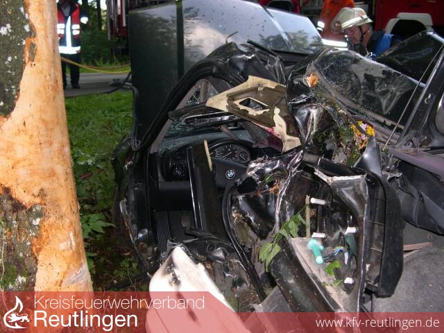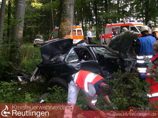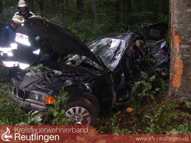 Am Samstagabend gegen 18.50 Uhr verunglückte eine 42 Jahre alte Frau auf der Kreisstraße 6758 zwischen Grabenstetten und Römerstein-Böhringen in einem Waldstück. Die Frau kam mit ihrem BMW in einer lang gezogenen leichten Linkskurve vermutlich aufgrund nicht angepasster Geschwindigkeit zunächst nach rechts von der Fahrbahn ab. Nachdem die Frau gegen gesteuert hatte, geriet das Auto außer Kontrolle und rutschte etwa 100 m quer über die Fahrbahn, drehte sich zweimal um 180 Grad und prallte anschließend mit der Fahrerseite gegen einen Baum. Die 42-jährige Fahrerin wurde in ihrem Auto eingeklemmt und musste von den Freiwilligen Feuerwehren Bad Urach und Römerstein aus ihrem Auto befreit werden. Währenddessen wurde die lebensgefährlich verletzte Frau von einem Notarzt erstversorgt. Anschließend wurde sie mit einem Rettungswagen zu einem in der Nähe gelandeten Rettungshubschrauber gebracht, der die Frau in eine Klinik flog. Zwischenzeitlich ist die Frau außer Lebensgefahr. Bei dem Unfall entstand Sachschaden in Höhe von 1.000 Euro.