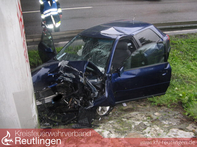 Zu einem schweren Verkehrsunfall musste die Feuerwehr Riederich auf die B312 ausrücken. In Fahrtrichtung Stuttgart war ein Auto gegen einen Brückenpfeiler geprallt.