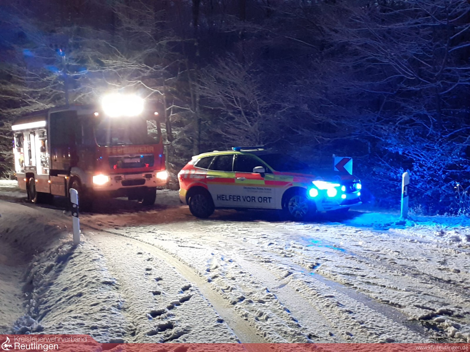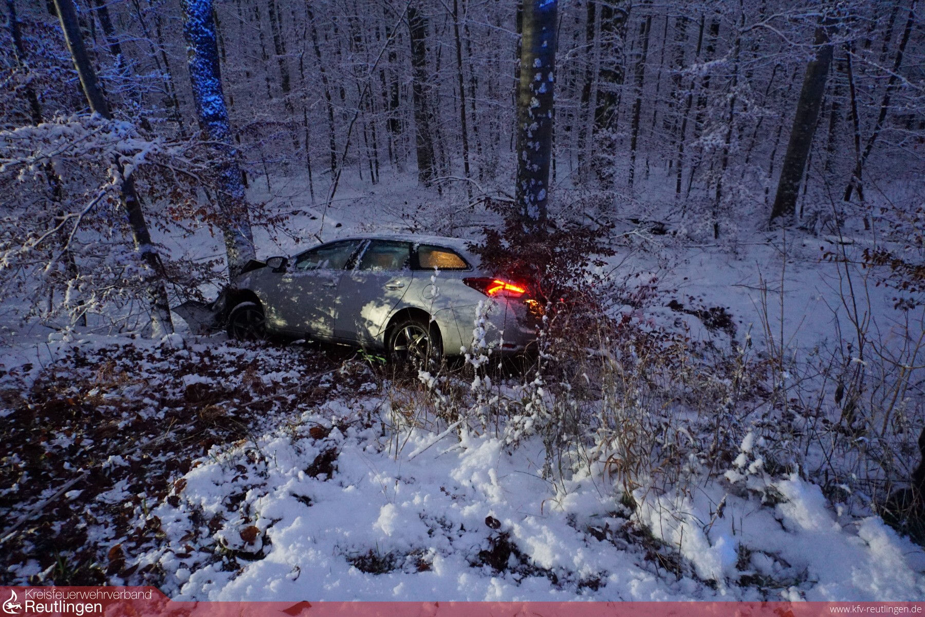 Am 05.12.2021 um 16:25Uhr, wurde die Feuerwehr Lichtenstein zu einem Verkehrsunfall auf die K6732 alarmiert. Auf der Zufahrtsstraße zum Schloss Lichtenstein, ist ein PKW mit mehreren Insassen, von der Straße abgekommen und gegen mehrere Bäume geprallt. Durch die ILS-Rt wurde mit dem Stichwort „H2-VU schwer“ die Feuerwehr Lichtenstein, sowie 2 RTW´s, 2 NAW´s, der HvO sowie der OrgL an die Einsatzstelle entsendet. Beim Eintreffen der Feuerwehr bestätigte sich die Lage, ein PKW mit 4 Insassen ist von der Straße abgekommen und hat sich zwischen 2 Bäumen verkeilt. Alle 4 Insassen konnten, ohne Einsatz von technischem Gerät , befreit und dem Rettungsdienst übergeben werden. Da ein weiteres Abrutschen des PKW´s ausgeschlossen werden konnte, beschränkten sich die Maßnahmen auf die Ausleuchtung der Einsatzstelle, die Entfernung von Baumstümpfen für die PKW-Bergung sowie der Grobreinigung der Straße.