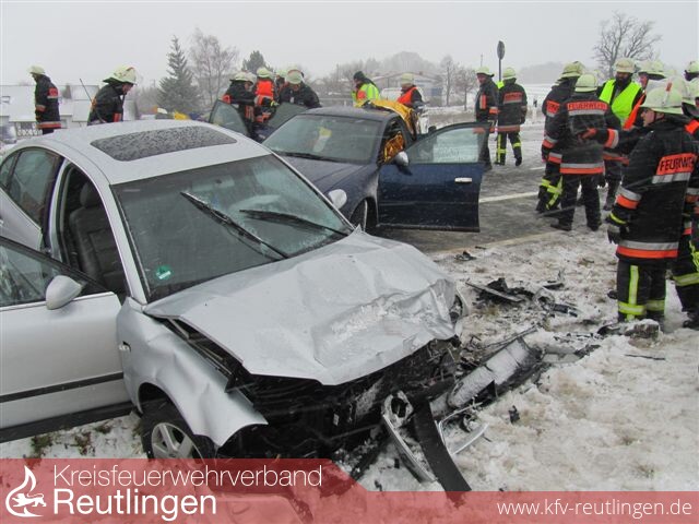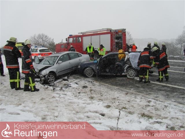Heilig Abend begann für die Männer der Feuerwehr Römerstein mit einem Einsatz. Auf der B 28 Höhe Zainingen kam es zu einem Verkehrsunfall mit zwei beteiligten Fahrzeugen: Ein VW Passat und ein Audi A3. Der Fahrer des Passats konnte sein Fahrzeug leicht verletzt eigenständig verlassen. Die Insassen des Audis mussten von den Einsatzkräften des Rettungsdienstes zuvor stabilisiert werden. Letztendlich musste glücklicherweise keiner der Verletzten aus dem Fahrzeug befreit werden. Die Verletzten wurden mit dem Rettungswagen in die Krankenhäuser transportiert. Die Feuerwehr half bei der Rettung der Verletzten sowie bei den späteren Aufräumungsarbeiten. Nach einer Stunde konnte die teilweise vollgesperrte Straße wieder für den Straßenverkehr freigegeben werden.