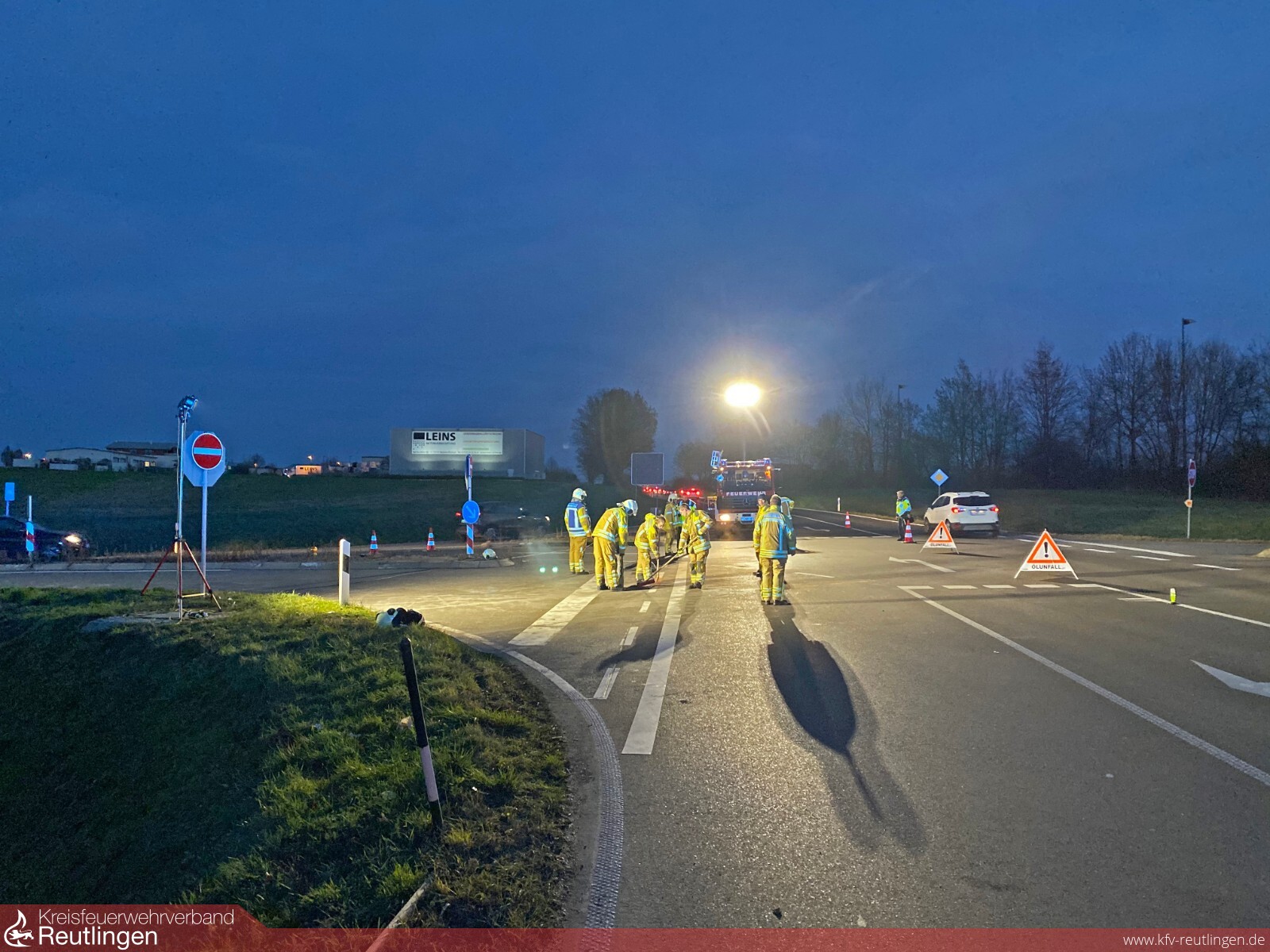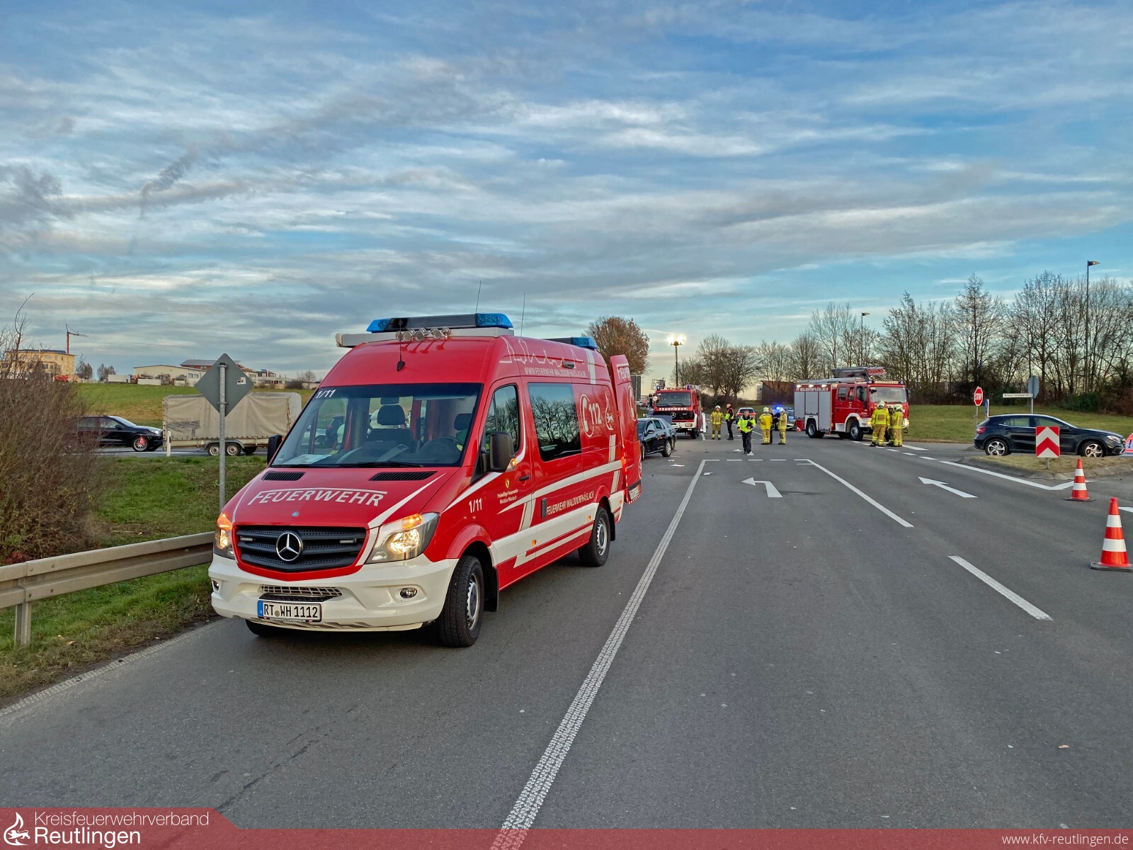 Walddorfhäslach: Gegen 15 Uhr wurden wir am Nikolaustag zu einem schweren Verkehrsunfall nach Walddorf alarmiert. Beim Eintreffen der ersten Kräfte konnten sechs Patienten gesichtet werden. Davon befand sich eine Person noch eingeschlossen, jedoch nicht eingeklemmt im Fahrzeug. Gemeinsam mit dem Rettungsdienst konnte die Person aus dem Fahrzeug gerettet werden. Ebenfalls unterstützten wir den Rettungsdienst bei der Versorgung der Patienten. Anschließend beleuchteten wir die Einsatzstelle zur Unfallaufnahme und nahmen die ausgelaufenen Betriebsstoffe auf. Nach ca. 3 Stunden konnte der Kreuzungsbereich wieder frei gemacht werden.