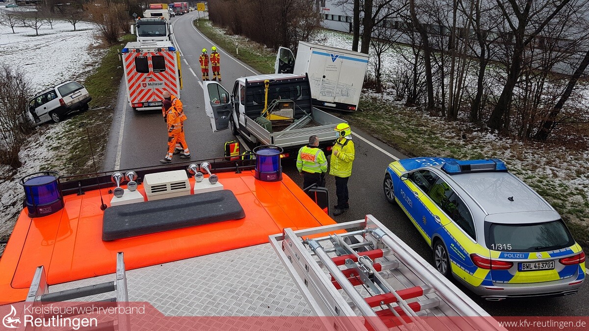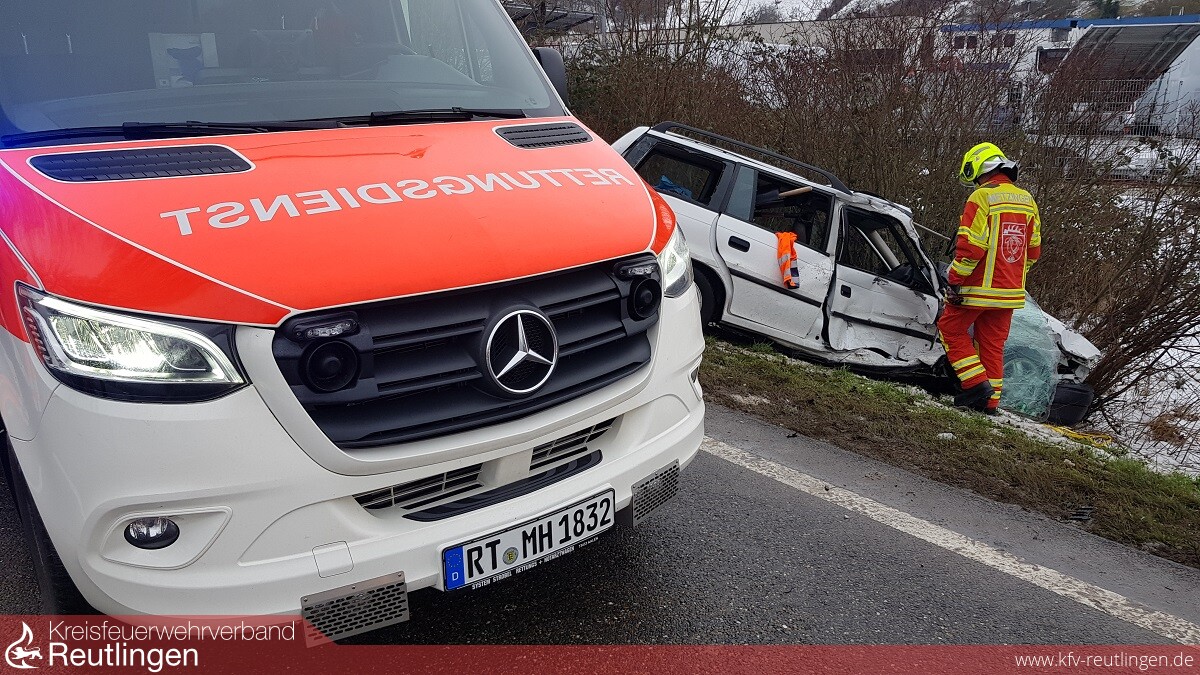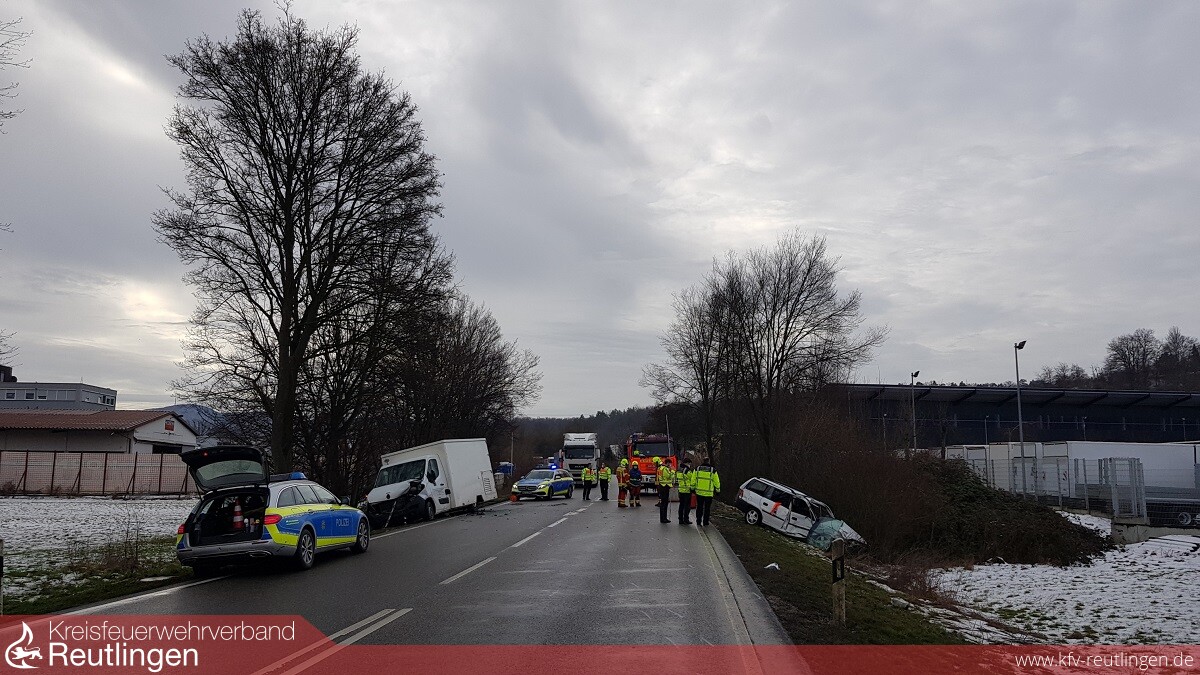 Gegen 8:45 Uhr alarmierte die Leitstelle für Feuerwehr und Rettungsdienst die Feuerwehr Metzingen mit dem Stichwort Verkehrsunfall schwer. Auf der Bundesstraße 312 kam es aus bislang ungeklärter Ursache zum Zusammenstoß zwischen einem Kraftfahrzeug und einem Verkaufswagen. Dabei wurden die beiden Fahrzeuginsassen schwer verletzt. Sie konnten jedoch ihre Fahrzeuge selbstständig verlassen. Die Feuerwehr stellte den Brandschutz sicher und sicherte die Einsatzstelle ab. Nachdem die beiden Verletzten in ein Krankenhaus abtransportiert wurden, konnte die Polizei mit der Unfallaufnahme beginnen. Anschließend unterstützte die Feuerwehr den Abschleppdienst bei der Bergung der beiden Fahrzeuge und reinigte die Straße von Betriebsmitteln und Unfallteilen. Da sich die Einsatzstelle auf der Gemarkung der Gemeinde Riederich befand, wurde durch die Leitstelle der örtliche Feuerwehrkommandant informiert. Im Einsatz waren die Feuerwehr Metzingen mit zwei Fahrzeugen und acht Einsatzkräften, der Rettungsdienst mit zwei Rettungsmitteln und einer Notärztin und die Polizei mit mehreren Streifenwagen. Die B 312 musste während den Rettungs- und Bergungsarbeiten rund drei Stunden voll gesperrt werden.