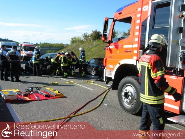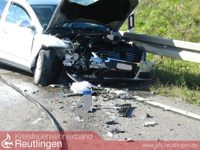 Auf der B 28 zwischen Bad Urach und Metzingen sind am Montagnachmittag bei einem Verkehrsunfall mit fünf beteiligten Fahrzeugen 4 Personen verletzt worden, davon 2 schwer. Ein 19-jähriger Skoda-Fahrer war auf der Bundesstraße von Bad Urach in Richtung Metzingen unterwegs. Auf Höhe von Neuhausen geriet er gegen 15.20 Uhr aus noch ungeklärten Gründen auf die Gegenfahrspur und es kam zum Streifvorgang mit dem VW-Passat einer 47-jährigen Frau, die in Richtung Bad Urach fuhr. In der weiteren Folge kollidierte der Skoda mit einem weiteren entgegenkommenden VW-Tiguan eines 53-jährigen. Der VW-Tiguan wurde nach der Frontalkollision gegen die Leitplanke geschleudert. EIn hinter dem Skoda fahrender 30-jähriger BMW Z4 Fahrer konnte nicht mehr rechtzeitig anhalten und fuhr in das Heck des Skoda. Der VW Passat wurde nach dem Streifvorgang in die linksseitig verlaufende Leitplanke abgewiesen. Dort stieß eine 44-jährige Fiat Panda-Fahrerin, die aus Richtung Bad Urach kam und keine Ausweichmöglichkeit mehr hatte, mit dem Passat zusammen. Der 19-jährige Unfallverursacher musste von der Feuerwehr mit hydraulischen Rettungsgeräten aus seinem Wrack befreit werden. Er und auch die Fiat-Fahrerin wurden mit schweren Verletzungen, zwei weitere Unfallbeteiligte mit leichten Verletzungen in die Kliniken in Bad Urach, Reutlingen und Tübingen eingeliefert. An den Autos entstand Sachschaden von mehreren zehntausend Euro. Neben der Feuerwehr waren noch neun Rettungswagen des DRK sowie drei Notärzte im Einsatz. Die B 28 war während der Unfallaufnahmen bis gegen 17.30 Uhr voll gesperrt.