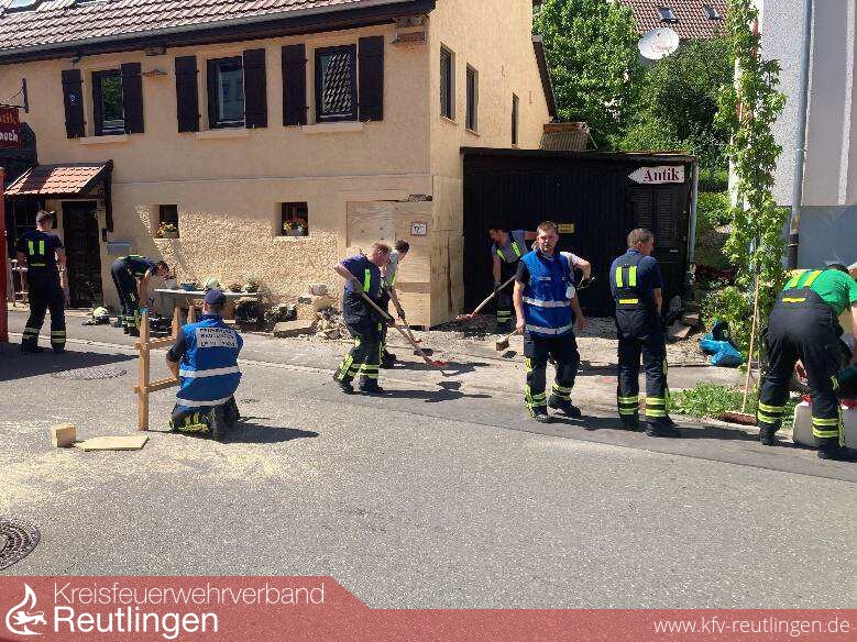 Von der Feuerwehr Reutlingen waren der Einsatzführungsdienst als Fachberater Bau, die Berufsfeuerwehr mit Helfer vor Ort, der Einsatzleitungsdienst, ein Hilfeleistungslöschfahrzeug, das Kleineinsatzfahrzeug und der Abrollbehälter Bauunfall sowie die Freiwillige Feuerwehr Ohmenhausen mit zwei Löschfahrzeugen vor Ort. Die Feuerwache wurde durch die Freiwillige Feuerwehr Stadtmitte besetzt. Diese unterstützte zudem bei der Zuführung der Sonderfahrzeuge.