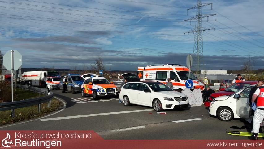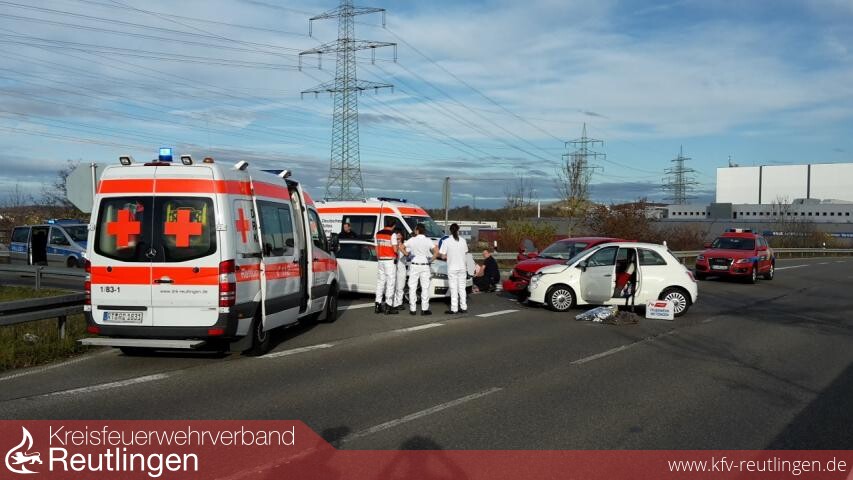 Erst vor zwei Wochen kam es an selber Stelle zu einem Verkehrsunfall mit mehreren Verletzten. Heute mussten insgesamt drei verletzte Personen durch die Rettungssanitäter der Feuerwehr Metzingen bis zum Eintreffen des Rettungsdienstes erstversorgt und betreut werden.