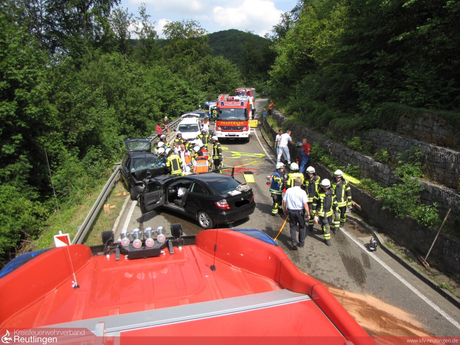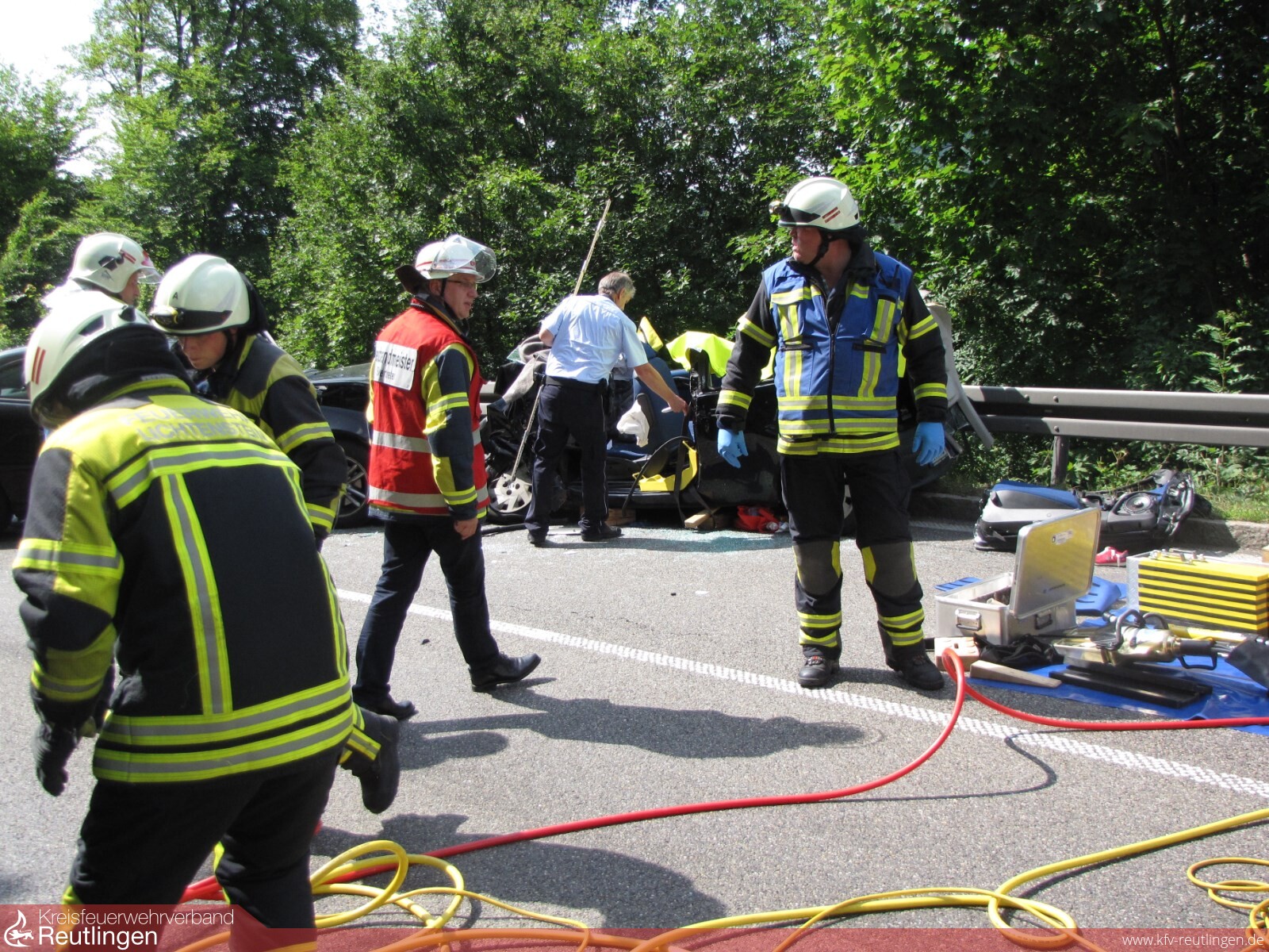 Aufgrund des Alarmstichwortes VU mit Rettung wurde automatisch der VRW der Feuerwehr Reutlingen zu Einsatzstelle entsandt.