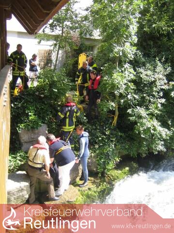 Die Rettungssanitäter der Feuerwehr unterstützten bis zum Eintreffen des Notarztes die weitere Betreuung der Frau und brachten sie von der Echazuferböschung auf das Straßennievau, wo sie vom Notarzt übernommen wurde.