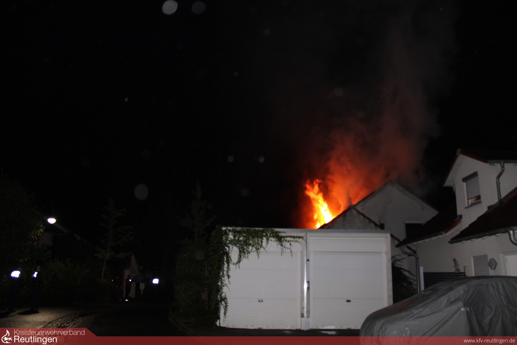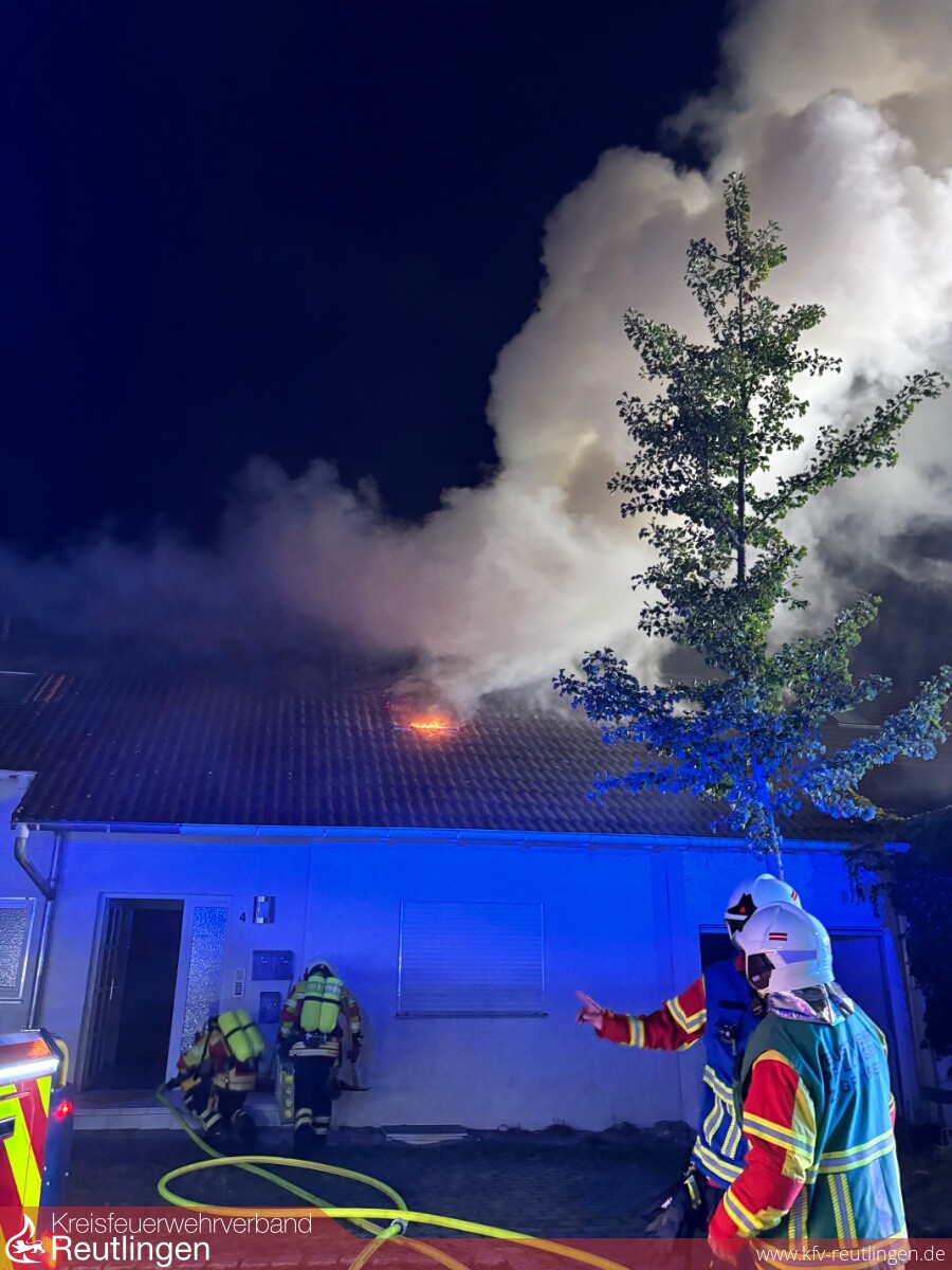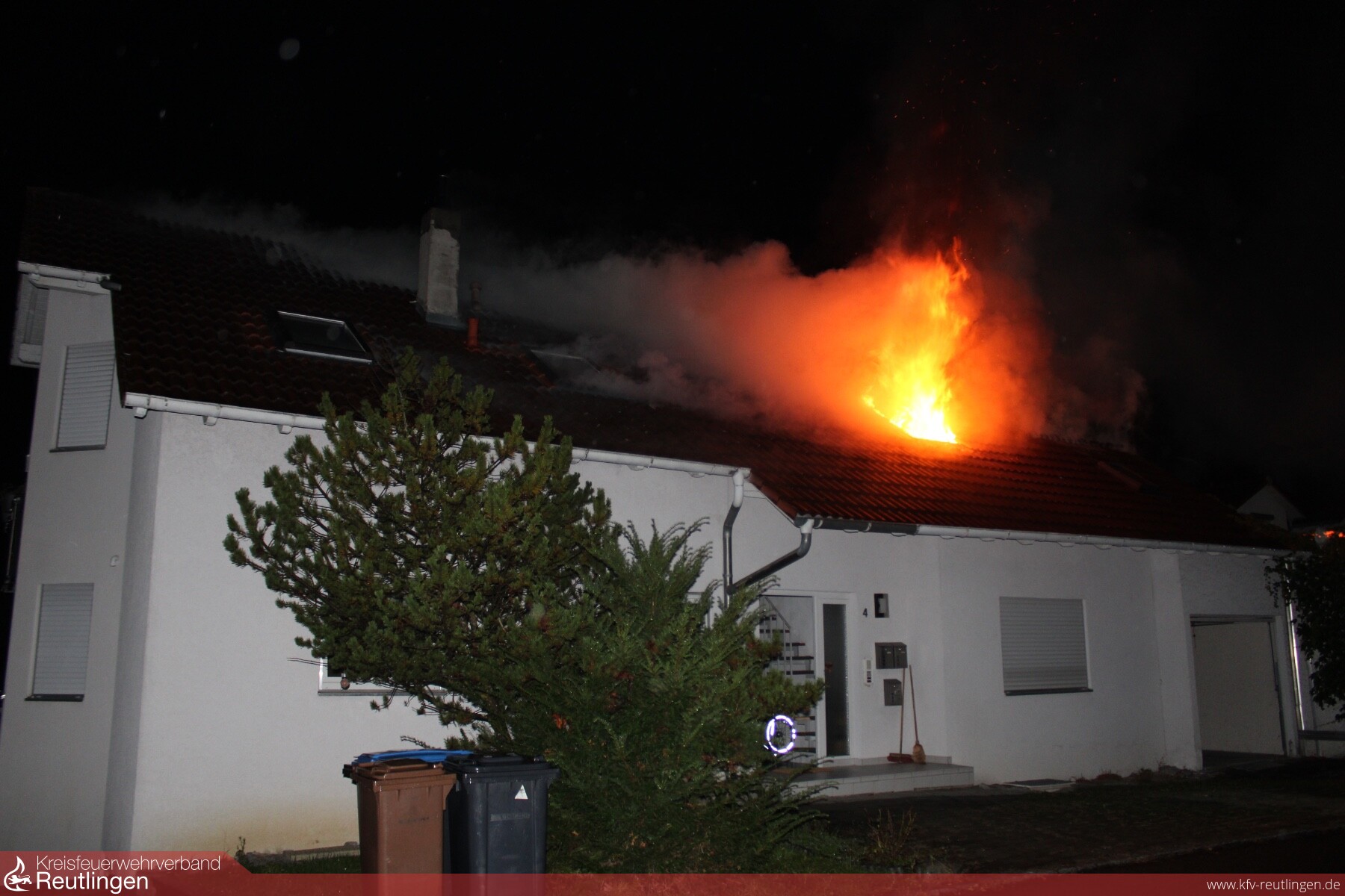 Vom ersten Löschfahrzeug wurde ein Löschrohr unter Atemschutz in das Dachgeschoss zur Brandbekämpfung vorgenommen, welches im weiteren Verlauf durch ein zweites Rohr ergänzte wurde. Über die Drehleiter wurde parallel ein handgeführtes Löschrohr im Außenangriff eingesetzt, ebenso ein weiteres Rohr von der Straße. In der Erstphase bestand die akute Gefahr der Durchzündung des gesamten Dachgeschosses, was aber durch den gezielten Innen- und Außenangriff verhindert und der Brand auf die beiden beim Eintreffen im Vollbrand stehenden Räume begrenzt werden konnte. Durch die enorme Rauch- und Hitzeentwicklung wurde jedoch die gesamte Dachgeschosswohnung beaufschlagt und ist somit aktuell unbewohnbar. Durch den gezielten Einsatz von Löschwasser konnte der Wasserschaden erheblich reduziert werden. Ein Wasserrohrbruch im betroffenen Bad führte jedoch in den darunterliegenden Wohnungen zu massiven Wasseransammlung und entsprechenden Schäden. Im weiteren Einsatzverlauf wurden durch die zuständigen Energieversorger das Gebäude stromlos geschalten und die Wasserzufuhr abgestellt. In aufwändiger, unter Atemschutz durchgeführten Nachlöscharbeiten, wurde die Dachhaut großflächig geöffnet und die vom Brand betroffenen Räume ausgeräumt, um so ein Wiederaufflammen des Brandes zu verhindern. Die betroffenen Bewohner konnten durch die Stadt Pfullingen akut in einem Hotel untergebracht werden, was durch Herrn Bürgermeister Wörner persönlich an der Einsatzstelle koordiniert wurde.
