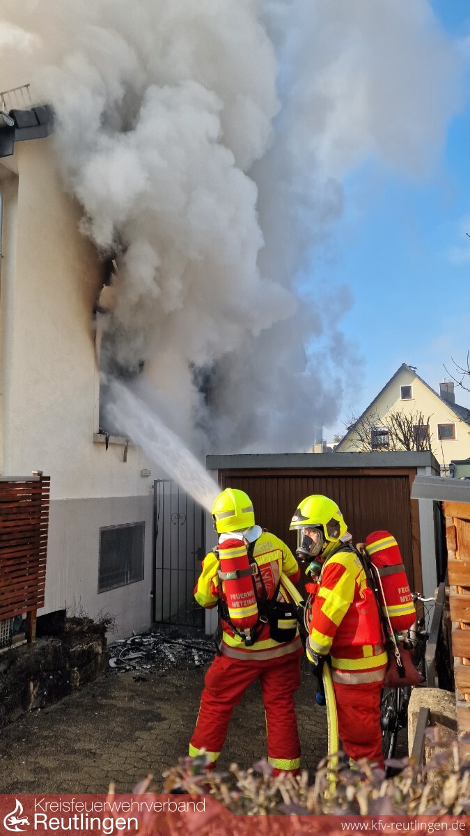 Ein Brand in der Erdgeschosswohnung eines Mehrfamilienhauses hat am Sonntagnachmittag den Einsatz von Feuerwehr, Rettungsdienst und Polizei ausgelöst. Gegen 13.55 Uhr rückten die Einsatzkräfte in die Breitwiesenstraße aus, nachdem mehrere Anrufer einen Gebäudebrand gemeldet hatten. Die Feuerwehr, die mit einem Großaufgebot vor Ort war, konnte den Brand unter Kontrolle bringen und schließlich löschen. Ersten Ermittlungen zu Folge war die Brandausbruchstelle in einem Kinderzimmer der Erdgeschosswohnung. Die in der Wohnung anwesenden Bewohner, eine 36-jährige Frau und ihre beiden ein- und dreijährigen Kinder, konnten sich selbstständig aus der Wohnung begeben. Der 55-jährige Bewohner der Obergeschosswohnung verletzte sich leicht, als er eine Fensterscheibe zur Schaffung eines zweiten Fluchtwegs einschlug. Er wurde vom Rettungsdienst in ein Krankenhaus gebracht. Eine weitere Bewohnerin der Obergeschosswohnung sowie die 36-Jährige wurden vorsorglich zur Untersuchung vom Rettungsdienst ins Krankenhaus gebracht. Ersten Schätzungen nach beläuft sich der Sachschaden auf mindestens 500.000 Euro. Aus Gründen der Löschwasserversorgung musste die Reutlinger Straße bis 16 Uhr für den Verkehr gesperrt werden, was zu keinen nennenswerten Verkehrsbehinderungen führte. Die Ermittlungen zur Brandursache dauern derzeit an. (Quelle: Polizeipräsidium Reutlingen)