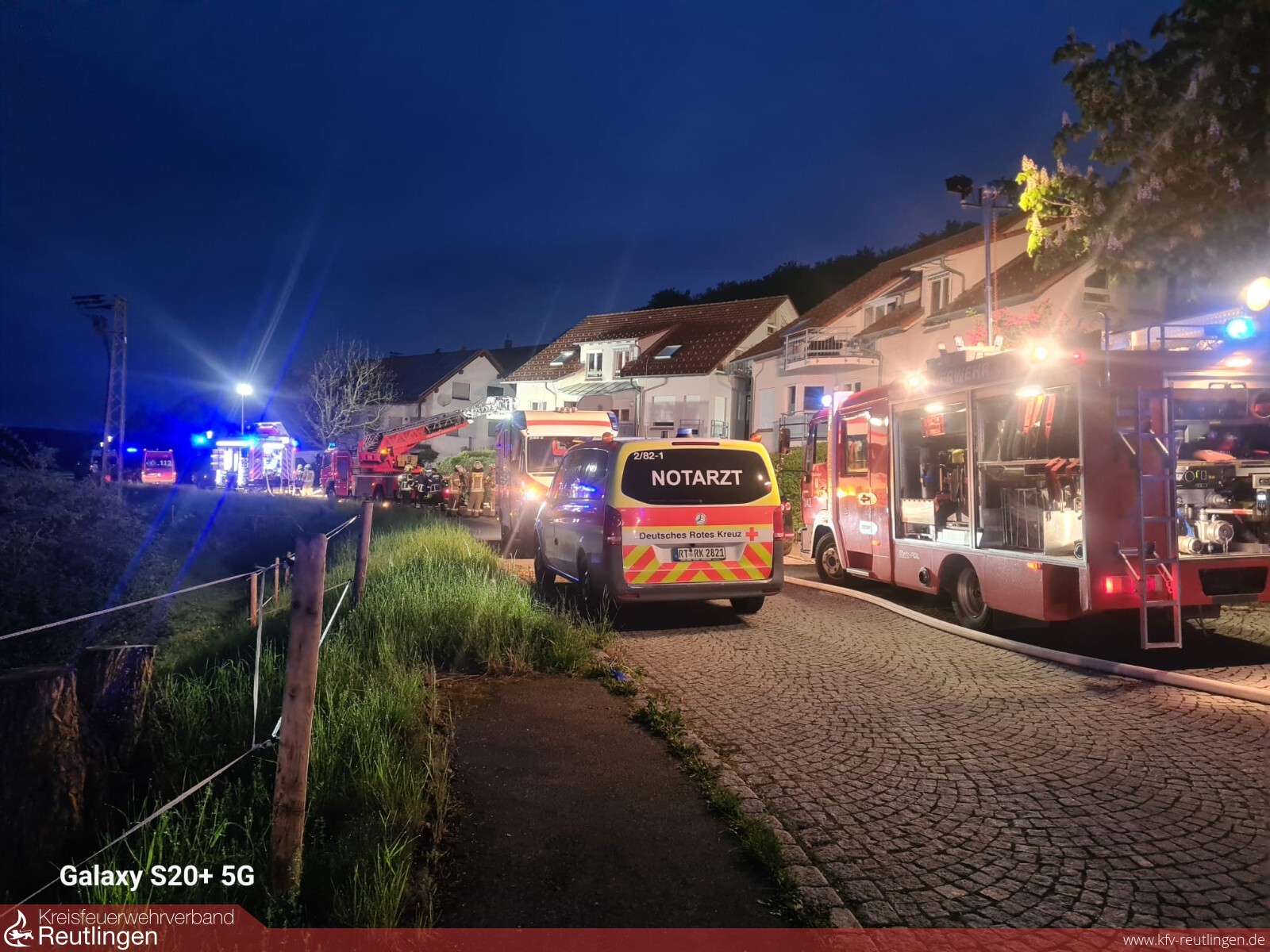 Eine Bewohnerin eines Mehrfamilienhauses hatte Rauchgeruch im Treppenhaus bemerkt und den Notruf gewählt. Die Feuerwehr betrat die Wohnung über ein angeleitertes Fenster. Im Wohnzimmer war aus noch unbekannter Ursache ein Brand ausgebrochen. Der 65 jährige wurde aus der verrauchten Wohnung gerettet und an den Rettungsdienst übergeben. Die in Brand geratenen Möbelstücke wurden abgelöscht. Die Feuerwehr Eningen stellte mit der Drehleiter eine Anleiterbereitschaft her und stellte einen Sicherheitstrupp für die eingesetzten Atemschutzgeräteträger/innen.