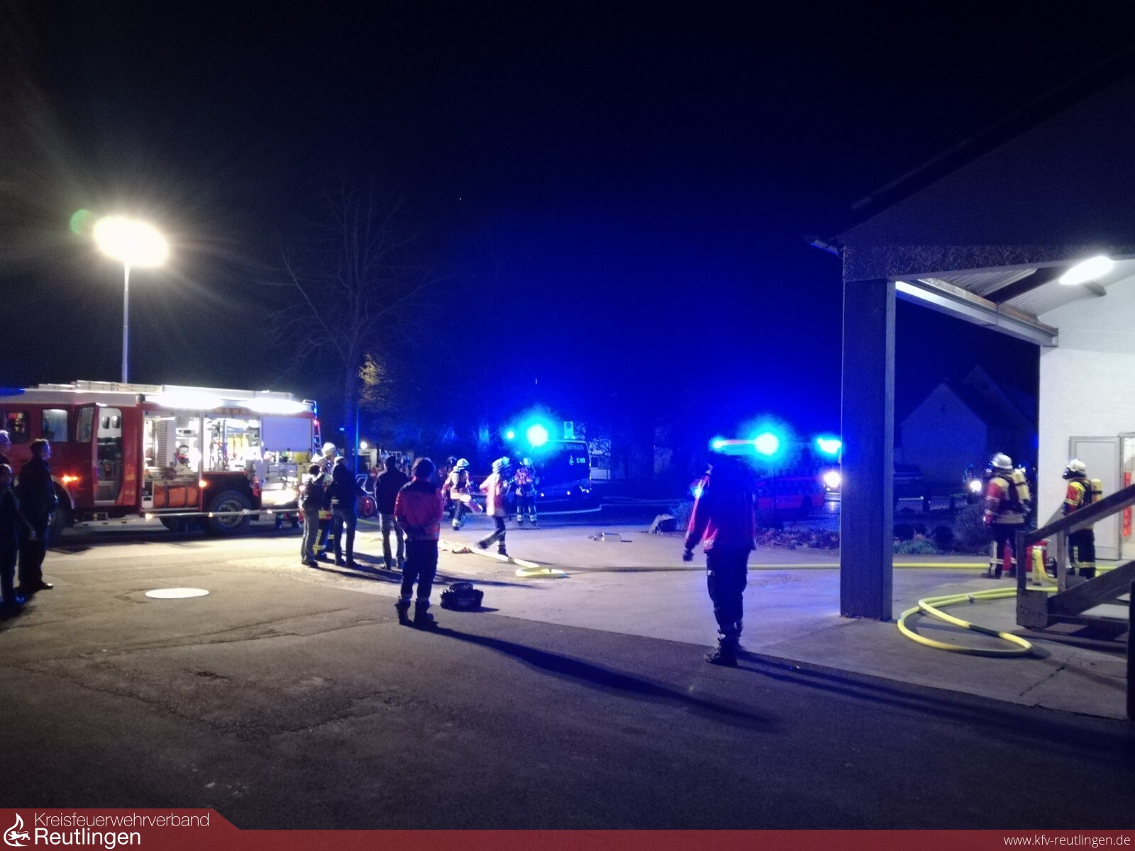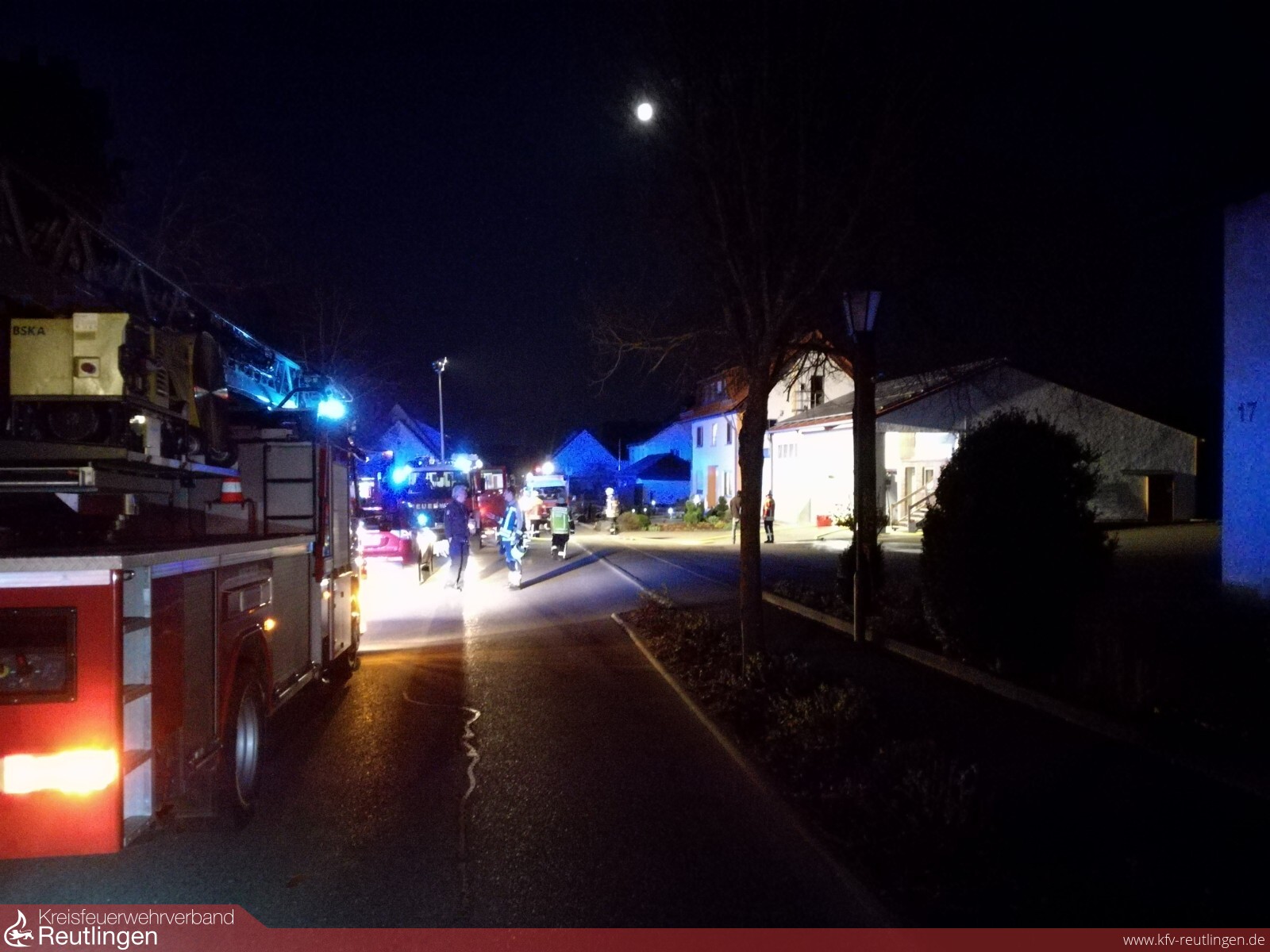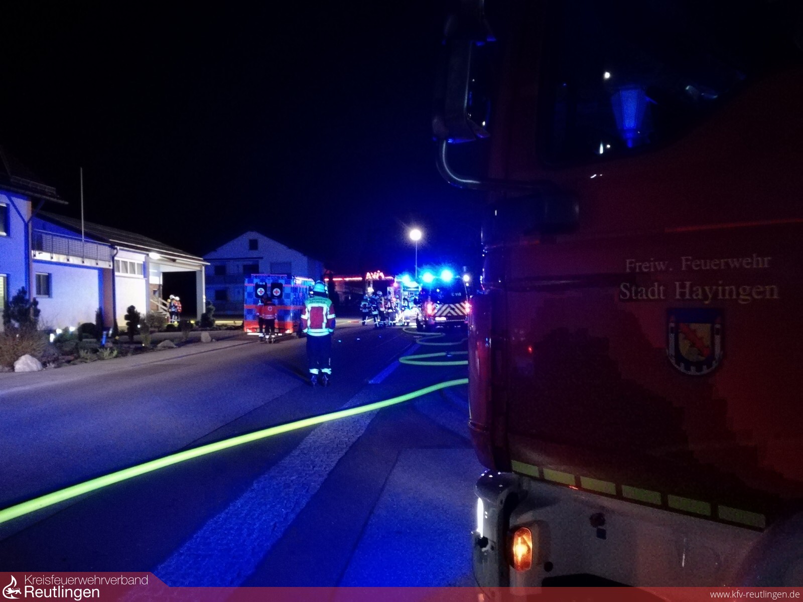 Gerufen wurde am frühen Morgen die Feuerwehr Hayingen Abteilung Hayingen, sowie die Feuerwehr Münsingen zur Überlandhilfe mit der Drehleiter zu einem gemeldeten Wohnungsbrand in der Münsinger Straße. Beim Eintreffen der ersten Fahrzeuge war weder Feuer noch Rauch sichtbar. Durch die Bewohner, die bereits alle aus dem Gebäude draußen waren, konnte der Brandherd schnell auf den Räucherofen zurück geführt werden. Dieser ist in einem vom Wohnbereich abgetrennten Gebäudeteil untergebracht. Außerdem gaben die Bewohner an, Flammenaustritt aus dem Kamin gesehen zu haben. Da keine Personen mehr im Gebäude waren und keine Gefahr für den angrenzenden Wohnbereich bestand, wurde ein Trupp unter Atemschutz zur Brandbekämpfung zum Räucherofen geschickt. Sichtbar stieg die Temperatur im Räucherofen deutlich über die im Normalbetrieb herrschenden Werte. Schnell brachte der Trupp den Räuchereinsatz ins Freie um diesen dort abzulöschen.Zur weiteren Erkundung ging ein Atemschutztrupp ins stark verrauchte Wohnhaus mit Wärmebildkamera vor. Dort waren seitens der Feuerwehr, außer dem Öffnen von Fenstern und Türen zur Belüftung, keine weiteren Maßnahmen nötig. Das Kamin wurde ebenfalls kontrolliert und den Bewohnern mitgeteilt dieses vom Kaminkehrer überprüfen zu lassen.
