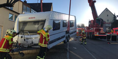 Zu einem schadensträchtigen Ereignis durch einen sich vom Zugfahrzeug gelösten Wohnwagenanhänger ist es am Freitagnachmittag in der Griesstraße gekommen. Der 48-jährige Lenker eines Wohnwagengespanns befuhr gegen 14.45 Uhr den Elsterweg und bog nach rechts in die Griesstraße ab. Hierbei löste sich aus bislang unbekannter Ursache der Anhänger vom Pkw. Aufgrund der dort sehr stark abschüssigen Fahrbahn rutschte der Anhänger, trotz nun blockierender Räder, links an dem Pkw vorbei, kam von der Fahrbahn ab und drang anschließend mit seiner Deichsel in die Wand eines Wohnhauses ein, wo er zum Stehen kam. Der Anhänger musste mittels eines Kranes der Feuerwehr geborgen und auf einem Tieflader abtransportiert werden. Es entstand ein Gesamtsachschaden von circa 18.000 Euro.