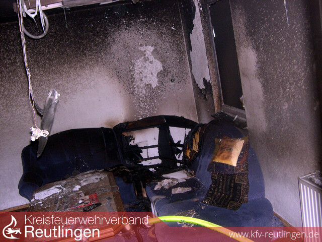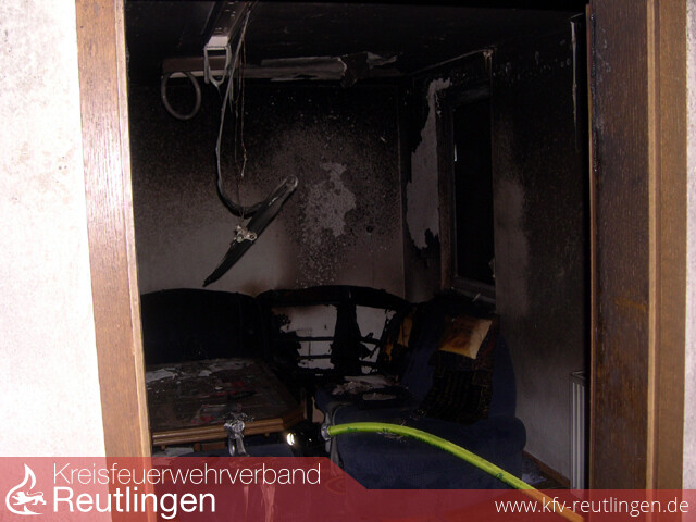 Rund 3 Stunden nach dem die Feuerwehr Bad Urach aus Grabenstetten wieder eingerückt war, wurden die Kameraden erneuet alarmiert. Alarmstichwort war dieses mal Zimmerbrand, auch hier war nicht klar ob Personen noch im Gebäude sind. Mit zwei Trupps unter Atemschutz wurde die Personensuche aufgenommen und das Feuer im Wohnzimmer bekämpft. Kurz darauf traf der Wohnungsbesitzer an der Einsatzstelle ein und bestätigte das sich niemand mehr in der Wohnung aufhalten würde. Das Gebäude wurde anschließend gelüftet und an die Polizei übergeben. Die betroffene Familie musste von der Stadtverwaltung in einer Notunterkunft untergebracht werden, dieses veranlasste Herr Bürgermeister Rebmann der auch an der Einsatzstelle war.