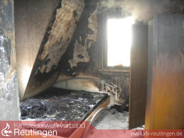 Aus bislang ungeklärter Ursache war es in dem Mehrfamilienhaus zu einem Zimmerbrand im 3. Obergeschoss gekommen. Da die Aussagen des Mieters zunächst widersprüchlich waren, konnte der Aufenthalt einer Person in der Brandwohnung nicht ausgeschlossen werden. Daraufhin wurde die Wohnungstür gewaltsam geöffnet und die Suche nach der Person durchgeführt. Als klar war, dass sich keine Person mehr in der Wohnung befand, konnte der Brand im Schlafzimmer mit einem C-Rohr schnell gelöscht werden. Ein weiterer Brand in einem Bretterverschlag im Dachboden über der Brandwohnung konnte bereits in der Entstehungsphase gelöscht werden.