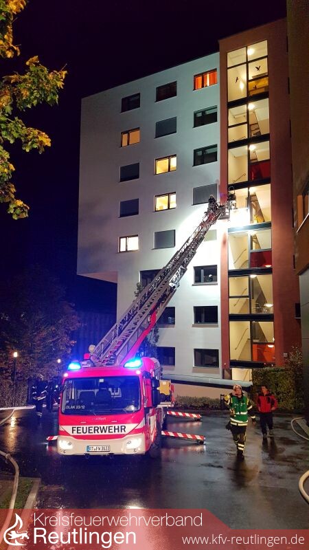 Am Abend wurde der Löschzug der Reutlinger Feuerwehr über die automatische Brandmeldeanlage ins pp.rt - Klinik für Psychiatrie und Psychosomatik Reutlingen - in die Wörthstraße gerufen. Noch während der ersten Erkundungsmaßnahmen war der Integrierten Leitstelle für Feuerwehr und Rettungsdienst telefonisch ein Brand im 2.OG in der mehrgeschossigen Einrichtung bestätigt worden, worauf sofort ein zweiter Löschzug zur Einsatzstelle entsandt wurde.