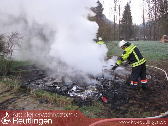 Die bereits abgebrannten Schuppen mussten von der Feuerwehr nur noch abgelöscht werden. Wie festgestellt wurde, sind zunächst zwei kleine, etwa 2 x 4 Meter große Schuppen unbemerkt niedergebrannt, wobei die Flammen auch auf einen daneben stehenden, vorwiegend als Unterstand genutzten größeren Schuppen ohne Seitenwände übergriffen. Bei dem Brand wurden auch verschiedene in den Schuppen untergestellte Gartengeräte und Pflanzen zerstört.
