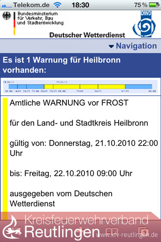 Ab sofort sind die amtlichen Wetterwarnungen des DWD in optimierter Darstellung auch unterwegs per Mobiltelefon unter http://mobil.dwd.de abrufbar. Für den Nutzer fallen neben den üblichen Tarifkosten des Providers keine zusätzlichen Kosten an. Bei der Entwicklung wurde darauf geachtet, dass möglichst viele Gerätetypen und damit nahezu alle Bürgerinnen und Bürger auf das Angebot zugreifen können.