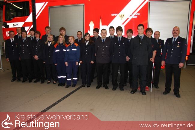 Mit 119 Jugendlichen in 13 Abteilungen, darunter 16 Mädchen, ist die Jugendfeuerwehr Reutlingen sehr gut aufgestellt. Dass die Jugendlichen motiviert sind, zeigt sich daran, dass wieder einige Jugendliche mit der Jugendflamme ausgezeichnet werden konnten. Für den Erwerb der Jugendflamme mussten die Jungen und Mädchen ihr Wissen in den Bereichen Feuerwehrtechnik und Brandbekämpfung sowie ihr Umweltbewusstsein unter Beweis stellen. Mit der Jugendflamme wurden ausgezeichnet: Lisa-Marie Betz, Nico Erdmann, Steffen Kimmich und Anika Kirschbaum.