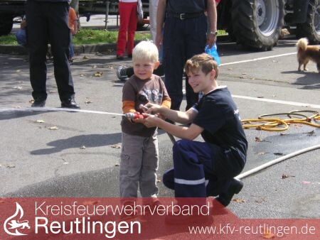 Schon zum 10mal wurde das Breuninger Kinderfest in Reutlingen durchgeführt, bei welchem sich die Firmen und Vereine für den Kinderschutzbund ins Zeug legen. Auch die Jugendfeuerwehr Reutlingen war mit 2 Löschfahrzeugen und 2 Jugendgruppen engagiert dabei. Da gab es den Kleinen und Großen Interessierten viel zu erklären und auch die sportliche Betätigung an der Kübelspritze kam nicht zu kurz. Hier kam es darauf an, mit ruhiger Hand, treffsicherem Auge und dem entsprechenden Fingerspitzengefühl einen Wasserball über eine Leiter tanzen zu lassen. Dies war bei schönem aber teilweise böigem Wetter nicht sonderlich einfach. Letztendlich hatte aber jeder seinen Spaß und die Jugendfeuerwehr Reutlingen unterstützte mit den gesammelten Spenden den Kinderschutzbund und Frühchen e.V. ein weiteres Mal.