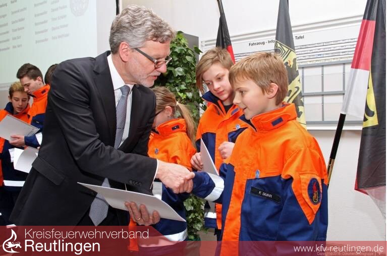 Besonders hervorzuheben sind aber die vielen Auszeichnungen und Ehrungen für die erbrachten Leistungen beim Reutlinger Feuerwehrnachwuchs im letzten Jahr. So konnten der anwesende Finanzbürgermeister Alexander Kreher und der Stellvertretende Feuerwehrkommandant Adrian Röhrle 22 Jugendliche mit der Jugendflamme in den Stufe 1 - 3 auszeichnen. Zudem erhielten 19 Jugendliche das Deutsche Sportabzeichen in Gold, Silber oder Bronze und erstmals 20 Jugendliche das Deutsche Feuerwehr Fitness Abzeichen.