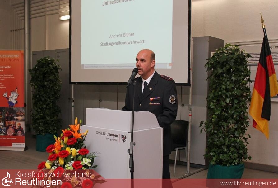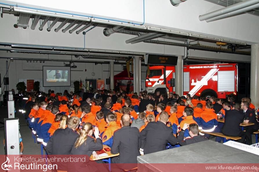 Bei der diesjährigen Jugendversammlung konnte Stadtjugendfeuerwehrwart Andreas Bleher nach der Begrüßung durch seinen Stellvertreter Joachim Blasy in der gut besuchten Fahrzeughalle der Reutlinger Feuerwache auf ein erfolgreiches Jahr 2017 zurückblicken. Highlights waren das Tischkickerturnier, die Dorfrallye oder die Großübung bei den Technischen Betriebsdiensten.