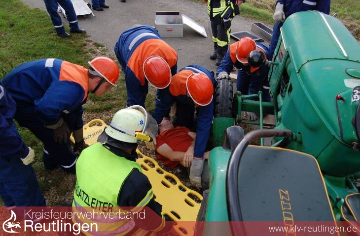Der Sport war um kurz nach 10.00 Uhr gerade beendet, als die Jugendfeuerwehr zu einem Verkehrsunfall alarmiert wurde. Ein Fahrradfahrer war an einer Hofausfahrt mit eine Traktor kollidiert und wurde unter diesem eingeklemmt. Die Jugendlichen hoben den Traktor mit Hebekissen an und konnten danach den Fahrradfahrer aus seiner misslichen Lage befreien.