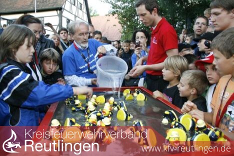 Eingebettet war die Aktion in das Landesjugendfeuerwehrfest, das von der Pfullinger Jugendfeuerwehr aus Anlass ihres 40-jährigen Bestehens ausgerichtet worden war. Mitgeholfen, die einhundert blauen, weißen und roten Eimer auf der rund fünf Kilometer langen Strecke durch die Echazstadt weiterzureichen, hatten deshalb damals auch viele Jugendliche aus dem ganzen Land.