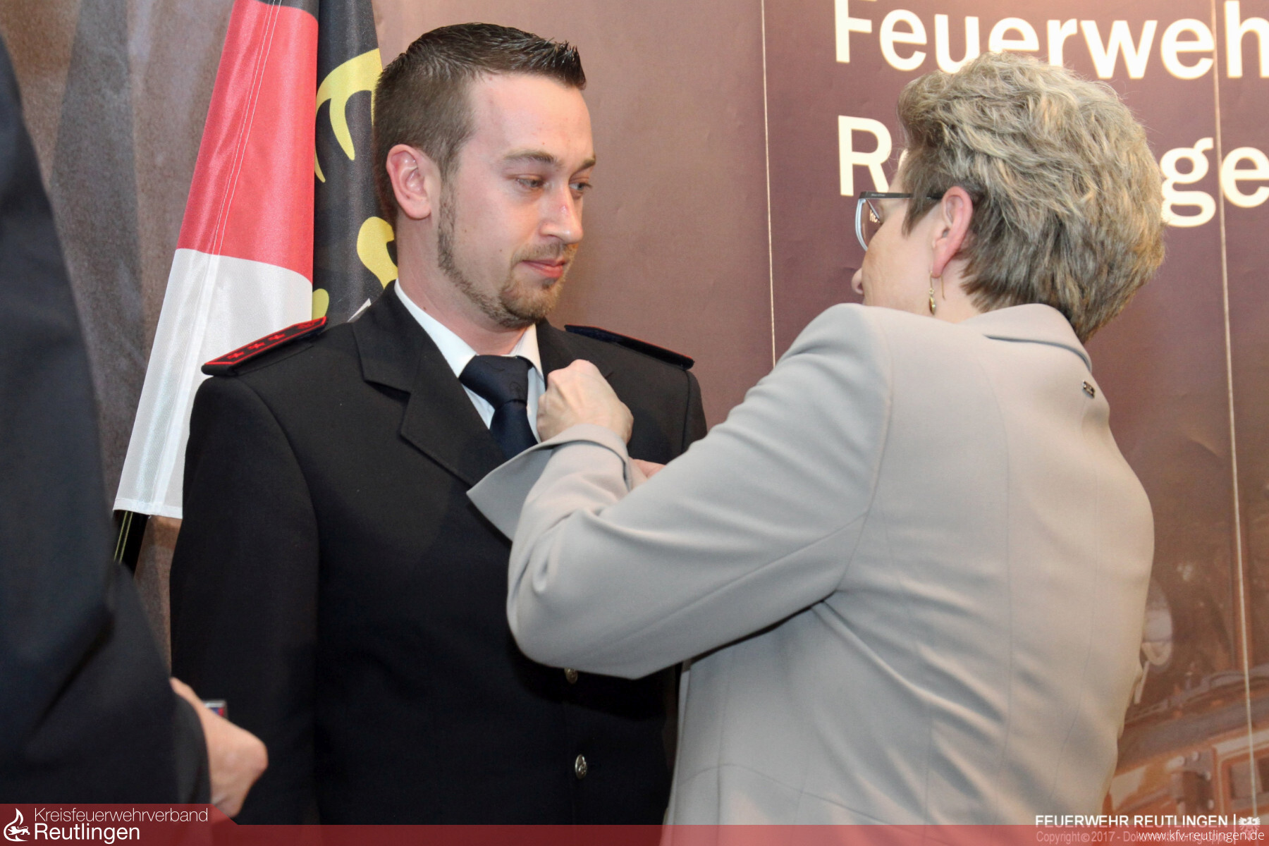 Beide Feuerwehrangehörige erhielten besondere Auszeichnung für ihre Verdienste in der Jugendarbeit. Seit über 10 Jahren tragen beide mit außerordentlichem Engagement in den Jugendgruppen Stadtmitte und Gönningen zum Gelingen der Jugendarbeit bei und sind Ansprechpartner und Berater für viele Jugendliche.