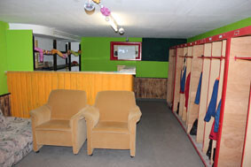 Aus dem unattraktiven Raum wurde ein freundlicher, ansprechender Aufenthalts- und Umkleideraum.