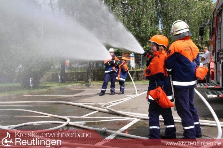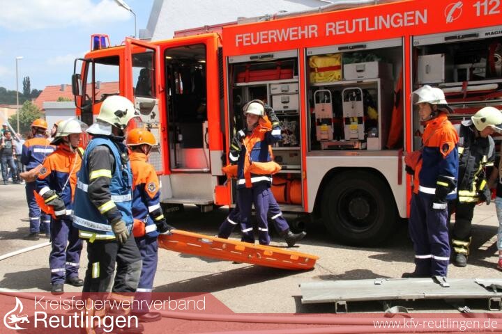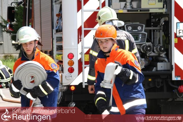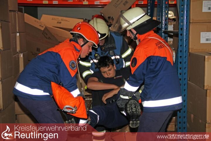 Auf dem Firmengelände in Pfullingen war nach einem Erdbeben der Einsatz der Jugendfeuerwehren gefragt, welche aus 16 Gemeinden des Landkreises angereist waren. Auch die Jugendfeuerwehr Reutlingen war mit Jugendgruppen der Stadtmitte, Sondelfingen, Mittelstadt, Sickenhausen und Altenburg an der Übung tatkräftig mit eingebunden. Dabei waren sie nicht in einem \"Reutlinger\" Abschnitt eingesetzt sondern alle Jugendfeuerwehren wurden nach Bedarf eingesetzt. Auch hier zeigte sich die gute Zusammenarbeit aller Jugendfeuerwehren und egal bei welchem Szenario waren die Brände schnell gelöscht, die Personen rasch befreit oder die PKWs stabil gesichert. Es war für jeden eine Freude zuzusehen, wie die Jugendlichen engagiert und zielstrebig die Ihnen gestellten Aufgaben gemeistert haben.