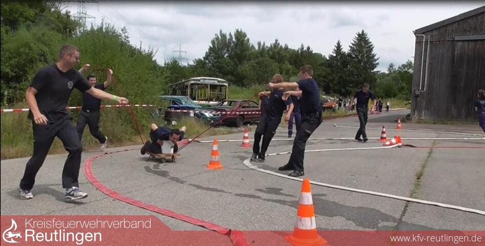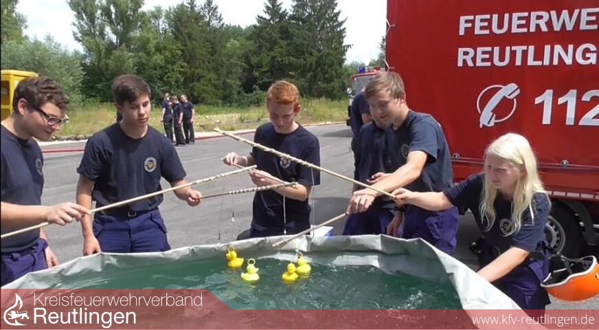 Am vergangenen Samstag auf der Reihersteige: Bei angenehm warmen Temperaturen mussten die Jugendlichen aus fast allen Abteilungen in kleinen Gruppen Spiele wie Schlauch entleeren bergauf, Entenangeln, Seilbeutel werfen, Schlauchkegeln, Wasserwagen ziehen und der blinde Feuerwehrmann bewältigen. Beim Spiel eggs can fly galt es ein rohes Ei nur mit den wenigen vorgegebenen Materialien so zu schützen, dass es einen Sturz aus 3 m Höhe unbeschadet überlebt. Nur eine Gruppe war hier erfolgreich.
