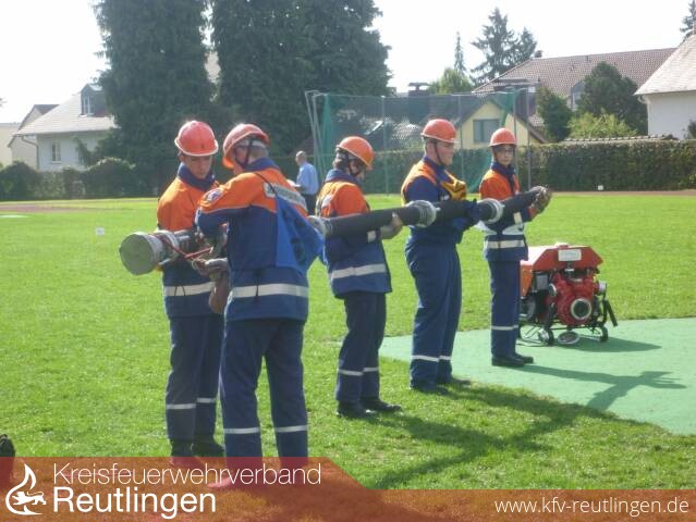 Am Samstag, den 21. September 2013, nahm die Jugendfeuerwehr Grafenberg, zusammen mit der Jugendfeuerwehr Metzingen, mit einer gemeinsamen Gruppe an der Abnahme der Leistungsspange der Deutschen Jugendfeuerwehr in Überlingen teil. Die Leistungsspangenabnahme wird in fünf Disziplinen durchgeführt. Einem 1500 Meter Staffellauf, Kugelstoßen, einem dreiteiligen Löschangriff, einer Schnelligkeitsübung in Form einer 120 Meter langen Schlauchleitung und dem Beantworten von Fragen. Während der Abnahme zeigte sich schon, dass sich die Wochen des langen und harten Übens gelohnt hatten. Denn bei der Siegerehrung bekam die Gruppe der Jugendfeuerwehren eine sehr gute Bewertung und alle teilnehmenden Jugendlichen erhielten eine Leistungsspange verliehen.