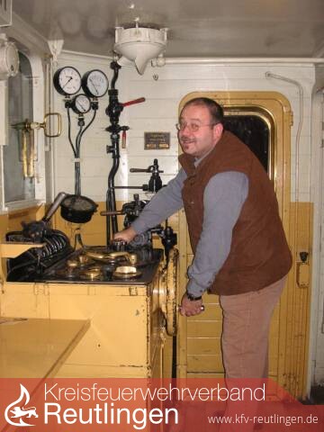 Unsere Gruppe fing in der Fahrzeughalle und ging über die Schlafräume vorbei an den Rutschstangen in die Küche. Dort roch es schon sehr gut, aber natürlich war es nicht für uns sondern die Wachmannschaft und die Teilnehmer eines Brandmeisteranwärter-Lehrganges.
