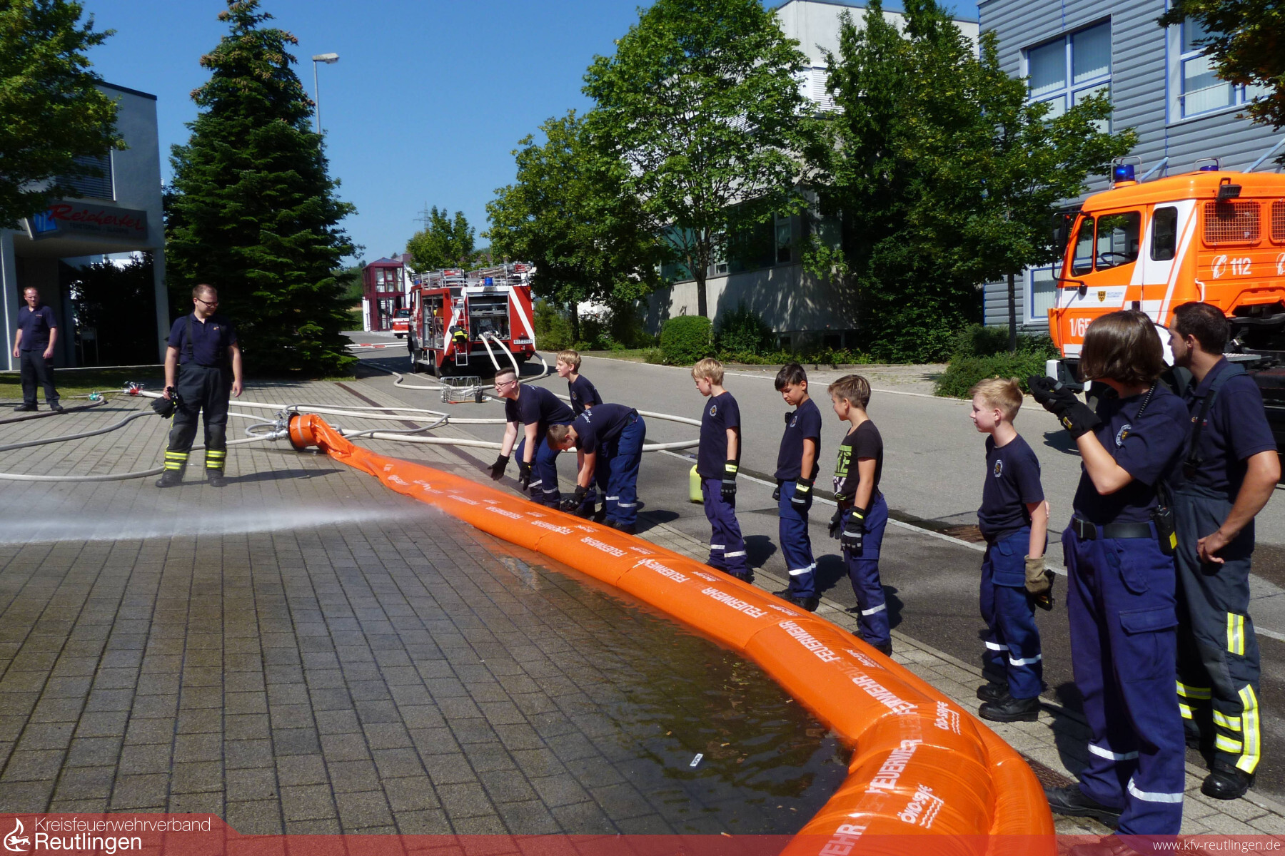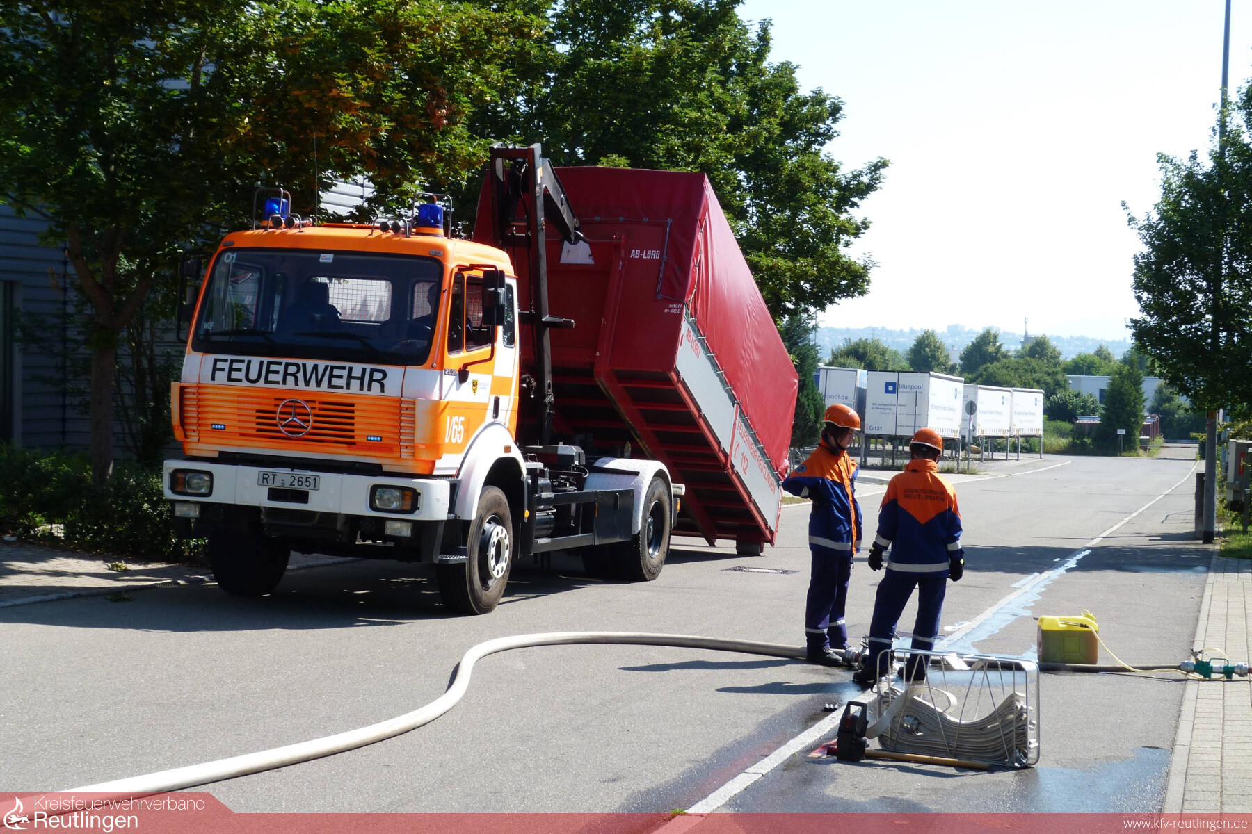 Wir wurden zu einem Werkstattbrand bei der Fa. Reicherter alarmiert. Da in der Werkstatt Lösungsmittel und Lacke verarbeitet werden, wurde der „AB-LöRü“ (Abrollbehälter Löschwasserrückhaltung) nachalarmiert. Wir haben gelernt wie man damit verhindern kann, dass kontaminiertes Löschwasser in die Kanalisation gelangt.