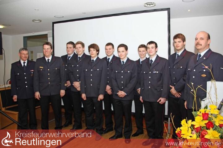 Elf Jugendliche konnten aus der Jugendfeuerwehr in die Einsatzabteilung übernommen werden. Als Zeichen ihres Wirkens in der Jugendfeuerwehr wurden Marcel Rometsch, Robin Schmand, Marion Wilske, Kevin Hohloch, Gregor Krohmer, Tim Müssle, Marco Schall, Philipp Dietrich, Christoph Horn, Marius Ott und Tobias Schanz vom stellvertretenden Feuerwehrkommandanten Adrian Röhrle mit der Jugendfeuerwehrnadel ausgezeichnet. Kreisjugendfeuerwehrwart Andreas Heinlin überbrachte die Grüße der Jugendfeuerwehren aus dem Landkreis.