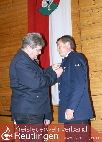 Außerdem berichtete der Kreisjugendfeuerwehrwart Andreas Heinlin in seinem Bericht über das Jahr 2008 über weitere durchgeführte Kreis- und Landessveranstaltungen sowie -lehrgänge. Für seine langjährige Arbeit als Kreisjugendfeuerwehrwart wurde Andreas Heinlin an diesem Abend die Ehrennadel der Jugendfeuerwehr Baden Württemberg durch Gunter Hespeler überreicht.