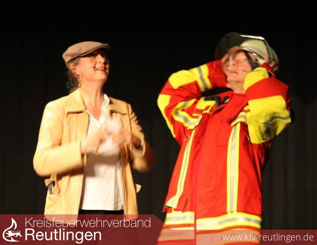 Doch ehe auf der Bühne gemordet und ermittelt wurde, hatte Moderator Harald Hüttl in kleinen Gesprächsrunden an den runden Geburtstag der Jugendfeuerwehr erinnert. Die war am 1. Februar 1982 offiziell aus der Taufe gehoben worden. Der damalige Kommandant Karl Reusch hatte seinerzeit Erwin Schweizer damit betraut, die Personalien der Jugendlichen aufzunehmen. Damit war nicht nur die Jugendfeuerwehr gegründet, vielmehr war er auch parallel zum ersten Jugendwart ernannt worden, wie er sich schmunzelnd erinnerte. Sein Nachfolger Ulrich Dolde war vor allem für seine Ausflüge bekannt. Gleich nach der Wende erlebten die Jungen die ehemalige DDR, reisten aber auch ans Mittelmeer. Udo Neuhäuser, der die Jugendwehr von 2001 bis 2006 führte, gründete die Kinderfeuerwehr, was der Gruppe einen nie mehr erreichten Frauenanteil sicherte. Der derzeitige Leiter der Jugendfeuerwehr, Frank Stiefel, bedauerte, dass inzwischen mehr Jugendliche der Wehr den Rücken kehren, als das einst der Fall gewesen sein. Dies führte er aber nicht auf mangelndes Interesse zurück, als vielmehr auf die Tatsache, dass die jungen Menschen „nicht immer freiwillige“ Ausbildungs- und Studienplätze fern ab der Heimat antreten müssen. Das seien die „natürlichen Feinde“ des aktiven Dienstes.