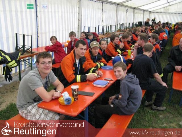 22 Jugendgruppen aus dem Landkreis Reutlingen, davon 12 aus der Stadt Reutlingen hatten sich zum Zeltlager angemeldet. Bei strömendem Regen bauten die Jugendlichen am Freitag nachmittag ihre Zelte auf, nachdem am Donnerstag bereits die Infrastruktur und das Verpflegungszelt von den Jugendgruppenleitern und den aktiven Mitgliedern der Einsatzabteilung aufgestellt wurde.