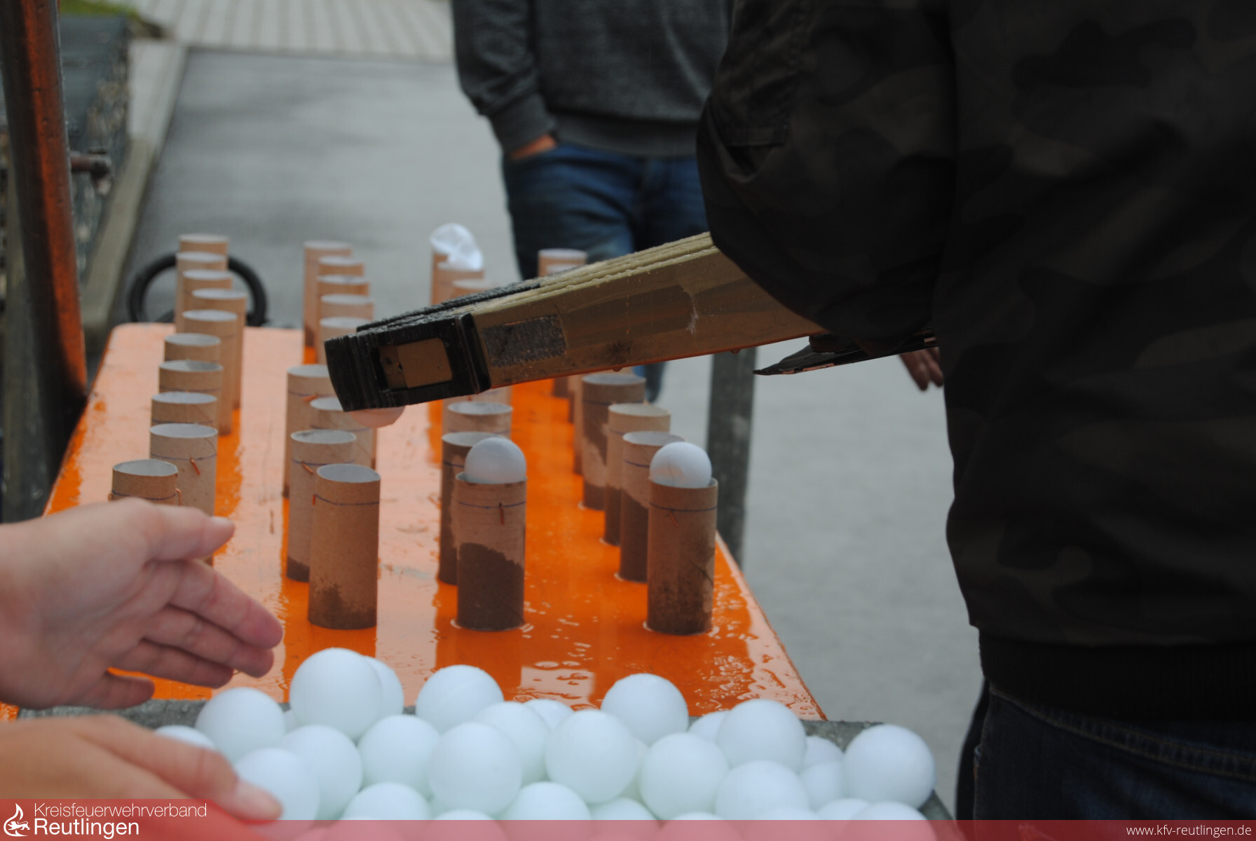 Station sollten Tischtennisbälle ohne Zerstörung mittels eines Spreizer's in leere Klorollen