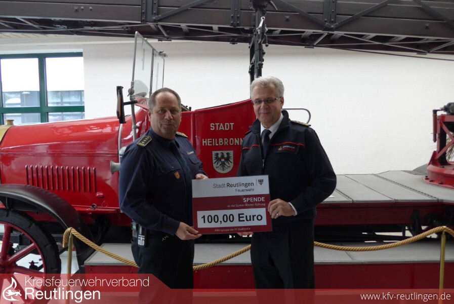 Die Altersgruppe hatte nach dem Tod von ihrem Kameraden Gerhard Ernst eine Spende in Höhe von 100 Euro erhalten, die sie einem guten Zweck zur Verfügung stellen wollten. Nachdem bereits in der Vergangenheit Kameraden der Feuerwehr Reutlingen in den Genuss einer Hilfe von der Gustav Binder Stiftung gekommen waren, hatte man sich entschieden, die Spende dort hin zu geben. Eberhard Jochim bedankte sich für die Zuwendung bei der Reutlinger Feuerwehr und freute sich, damit auch künftig damit in Not geratenen Feuerwehrangehörigen helfen zu können.
