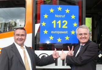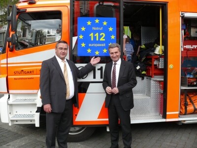 die Stuttgarter Feuerwehr hat zur Europawoche 2012 ein europäisches Zeichen gesetzt und als erste Feuerwehr europaweit ihre Fahrzeuge mit dem neuen \"Notruf 112 europaweit\"-Logo dauerhaft beklebt. Die Aktion fand zum Anlass der Europawoche am 4. Mai 2012 unter Leitung des Stuttgarter Feuerwehrchefs Dr. Frank Knödler und in Begleitung des baden-württembergischen Europaministers, Peter Friedrich statt. Die Aktion wurde vor Ort auch von EU-Kommissar Günther Oettinger und dem Vizepräsidenten des Europäischen Parlaments, Rainer Wieland unterstützt (siehe PM in der Anlage). Kooperationspartner war das bundesweite Europe Direct Informationsnetzwerk.
